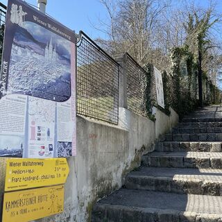 Auf dem Wiener Wallfahrerweg auf den Parapluiberg und weiter zur Kammersteinerhütte. Abstieg auf dem Weitwanderweg ins Zentrum von Perchtoldsdorf. Am Forstweg fehlen die Markierungen, bei den Abzweigungen geht man am besten geradeaus.