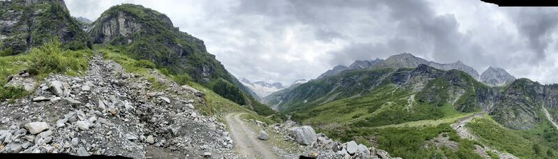 The hike starts off on relatively flat gravel road until you reach the materialseilbahn. Then goes up steeply for the last 600hm.