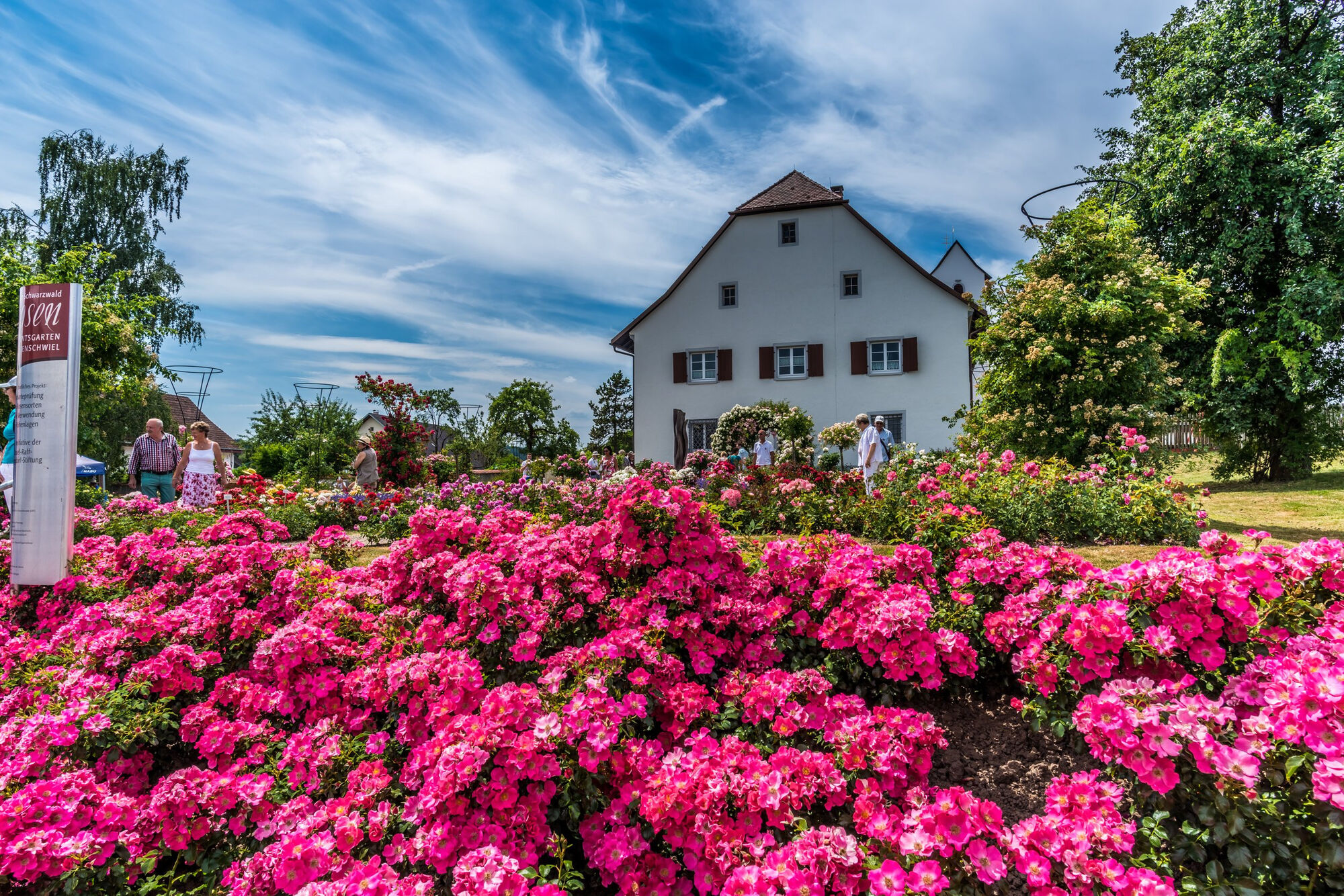 Der wunderschöne Rosengarten in Nöggenschwiel ist definitiv einen Besuch wert. Über 187 Rosensorten können in der Gartenanlage bestaunt werden.
