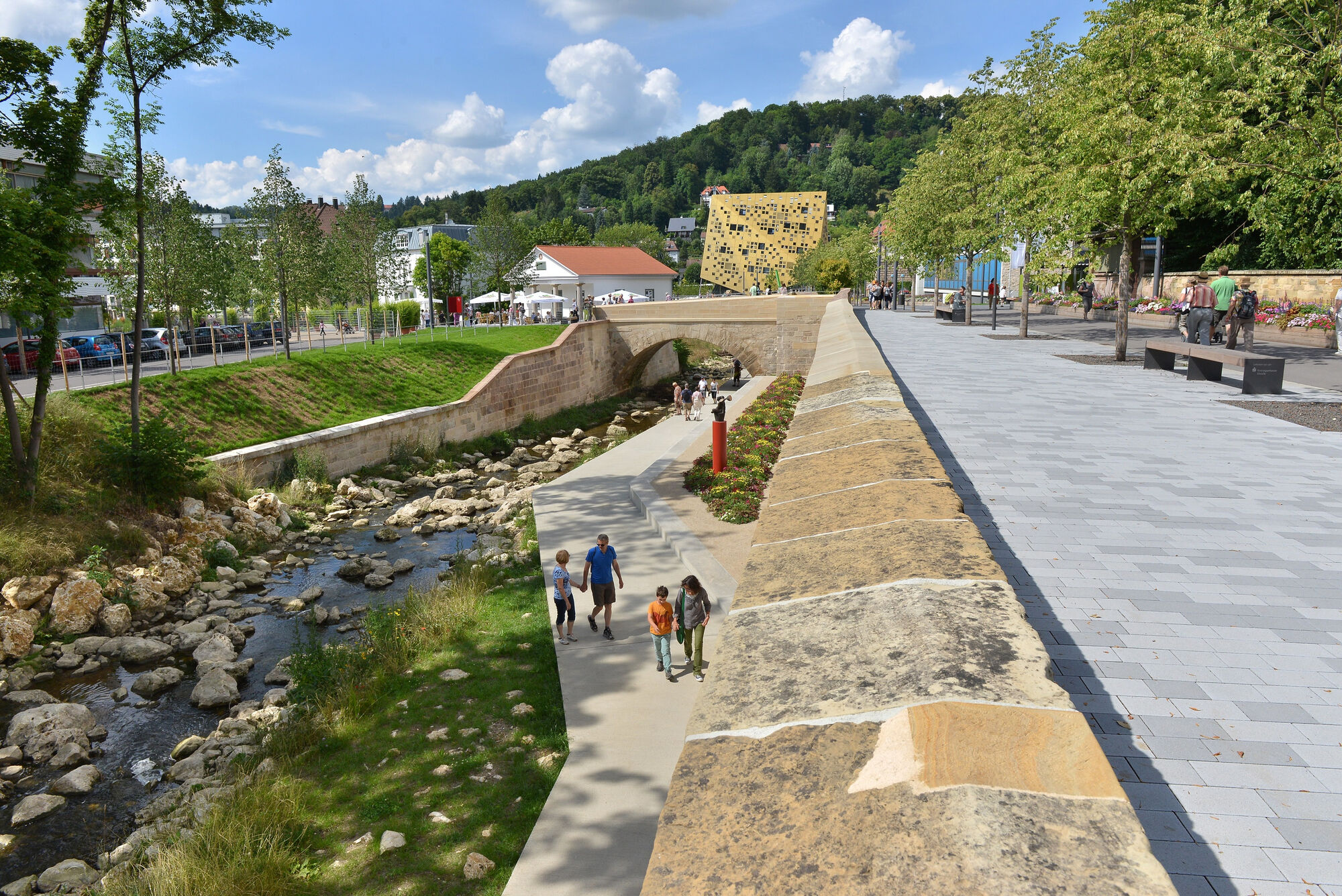 Die am Bahnhof beginnende Tour führt über den Remspark entlang der idyllischen Grabenallee am Josefsbach. Diese ist gesäumt von herrlichen Villen, alten Bäumen, kühlem Wasser, wundervollen Ecken und Plätzchen, die zum Entspannen und Innehalten einladen. Über den Zeiselberg und vorbei am Königsturm und dem früheren jüdischen Viertel gelangt man schließlich mitten ins Herz von Schwäbisch Gmünd. Die Gmünder Altstadt ist geprägt von ihrer reichen Gold- und Silbertradition, von Kirchen und Klöstern, zauberhaften Gassen und Plätzen mit zahleichen Restaurants und Cafés. Hier lohnt es sich, eine gemütliche Pause einzulegen, bevor der Weg über das Heilig-Kreuz-Münster und die Bocksgasse zurück zum Ausgangspunkt führt.
