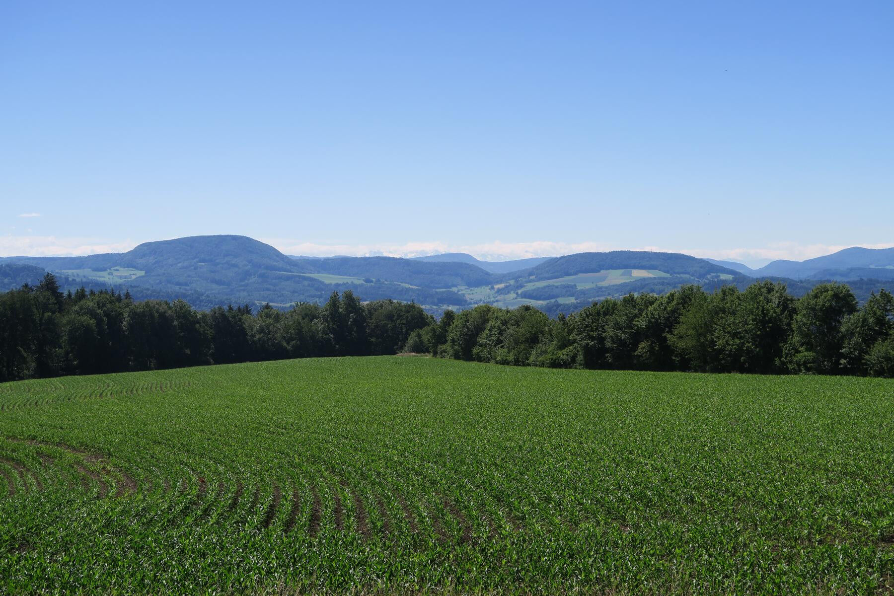 Zurückam Pflanzgarten wandern wir geradeaus entlang der gelben Raute zumWanderparkplatz Thimos. Nun nach rechts und zur wunderschöngelegenen Antoniuskapelle. Das kleine Gotteshaus ist wie das gesamteNaturschutzgebiet Thimos ein beliebtes Naherholungsziel für dieBewohner der Hochrheinregion. Vom Abzweig Thimos steuern wir nocheinmal ins Murgtal hinab, welches wir bei der Lochmühle erreichen.Auch diesmal geht es direkt wieder bergan. Über eine aussichtsreicheKuppe gelangen wir zur Herz Jesu Kapelle in Harpolingen, einemOrtsteil der Stadt Bad Säckingen. Auf der Dorfstraße kurz rechts,dann links in die Moosstraße und rechter Hand auf dem Neumattweg ausder Bebauung hinaus. Am Wegweiser Fluth wechseln wir von der gelbenauf die blaue Raute und steigen nach links in einen steilenTaleinschnitt hinab. Zwischendurch erhebt sich markant vor uns der Spitzbühl, den man in einem unmarkierten Abstecher besteigen kann.