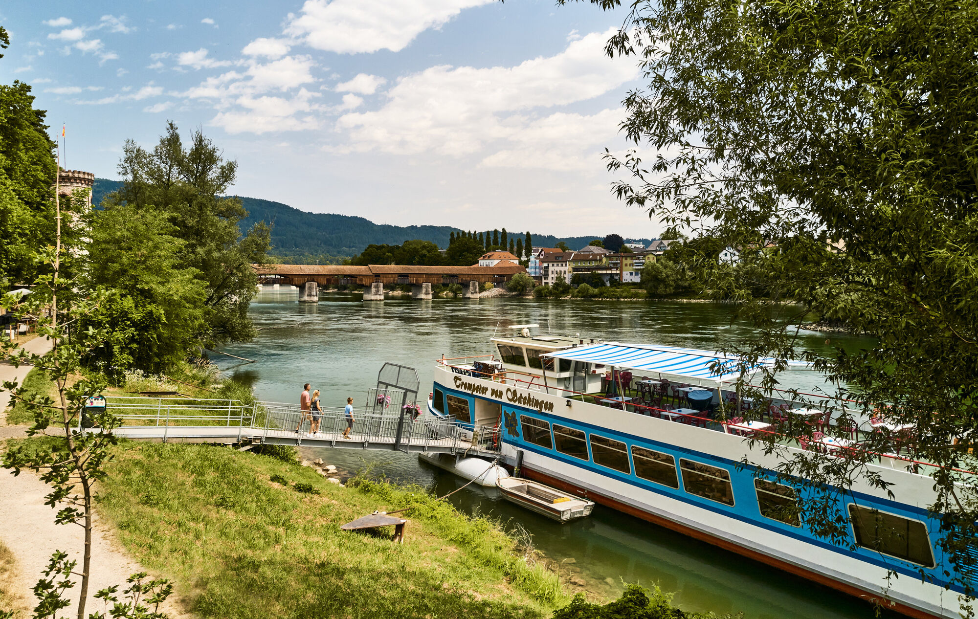Auf dem Weg durchqueren Sie Harpolingen und Obersäckingen und kommen wieder zum Rhein. Die malerische Altstadt Bad Säckingens mit historischen Sehenswürdigkeiten wie der Holzbrücke und dem St. Fridolinsmünster, Cafés und Kultur pur warten auf Sie