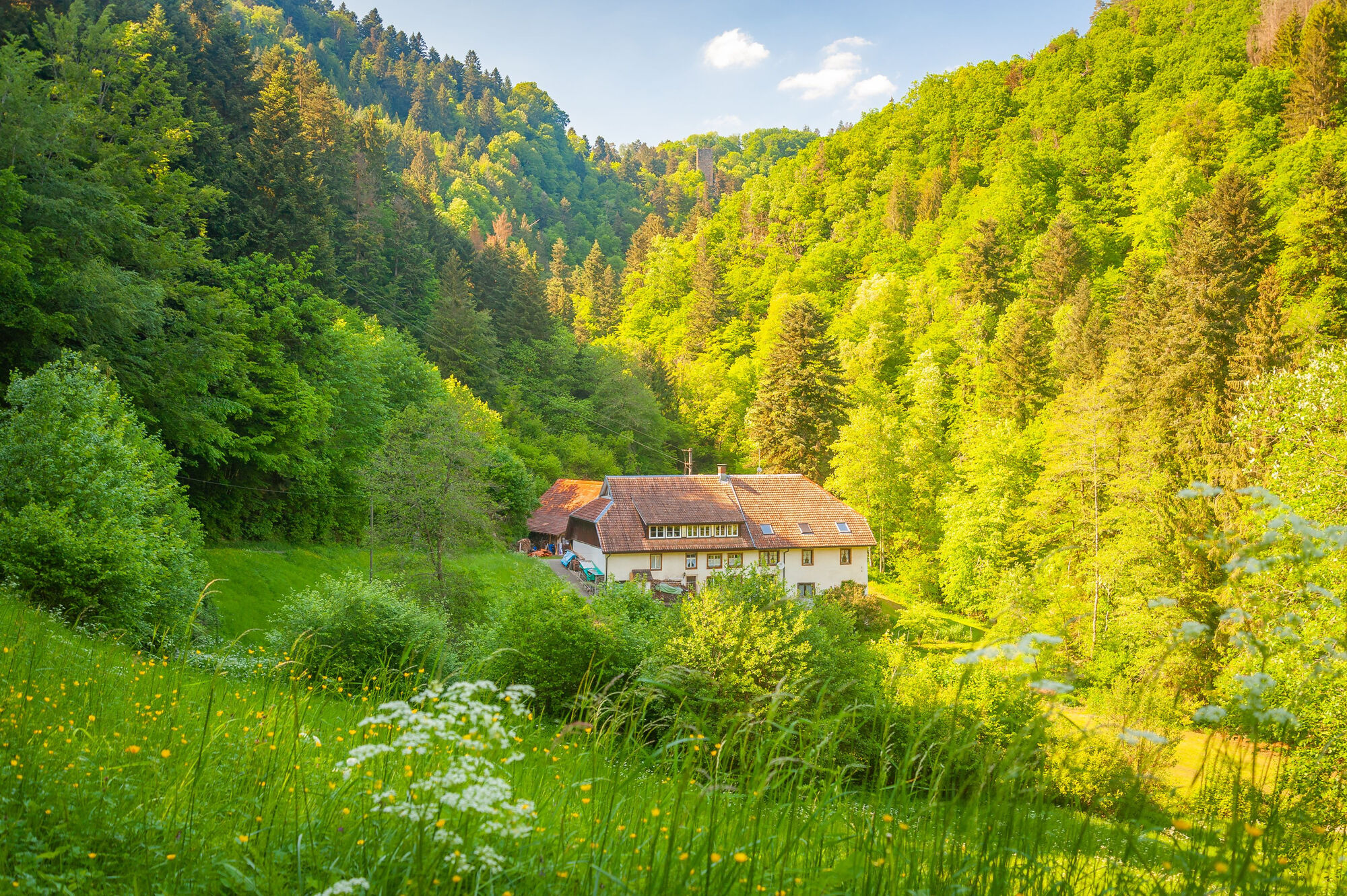 Zu Beginn der finalen Etappe können Sie vom Bergfried der Ruine Wieladingen eine atemberaubende Aussicht aufs idyllische Murgtal genießen, einst Schauplatz der Machenschaften vom Raubritter Hans, dessen Geschichten Sie hier nachlesen können. Weiter entlang der Lehnbachfälle erreichen Sie bald das Naturschutzgebiet Thimos mit dem herrlichen Weiher.