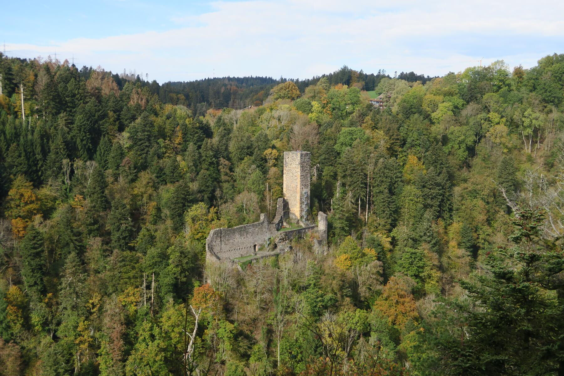 Von der Bushaltestelle RickenbachFriedborn orientieren wir uns auf dem Hochrhein-Höhenweg zum nahenLehnhof und wandern leicht absteigend zur Ruine Wieladingen hinunter.Das historische Gemäuer mit dem restaurierten Bergfried steht inerhabener Position über dem steil einfallenden Murgtal. Unterhalbdes begehbaren Wehrturms erläutern mehrere Infotafeln dieumfangreiche Historie. Nach diesem spektakulären Start in denWandertag ist der Steilabstieg entlang der munter plätscherndenLehnbachfälle zur Murgtalbrücke zu meistern. Gegenüber wartet dersofortige Wiederaufstieg bis zum Pflanzgarten, wo sich linker Handder Abstecher zum Stellekopf anbietet. Vom Aussichtspunkt (Sackgasse)öffnet sich ein hübscher Blick zur vorhin besuchten Ruine.