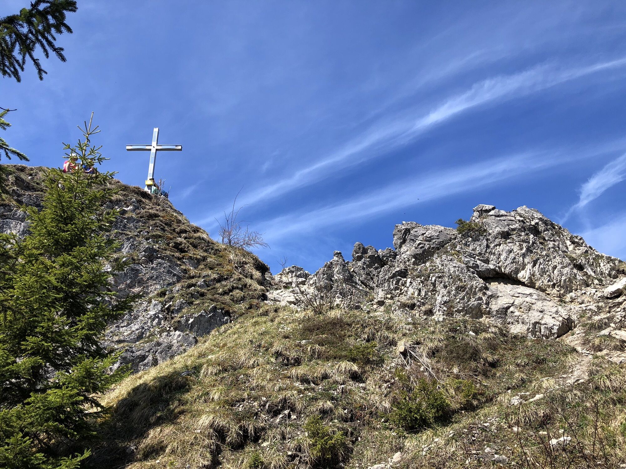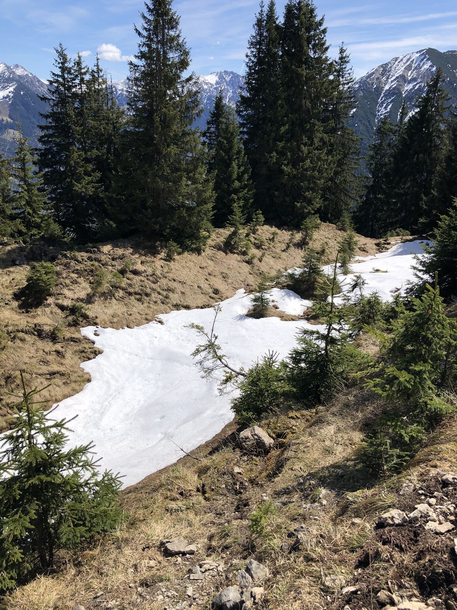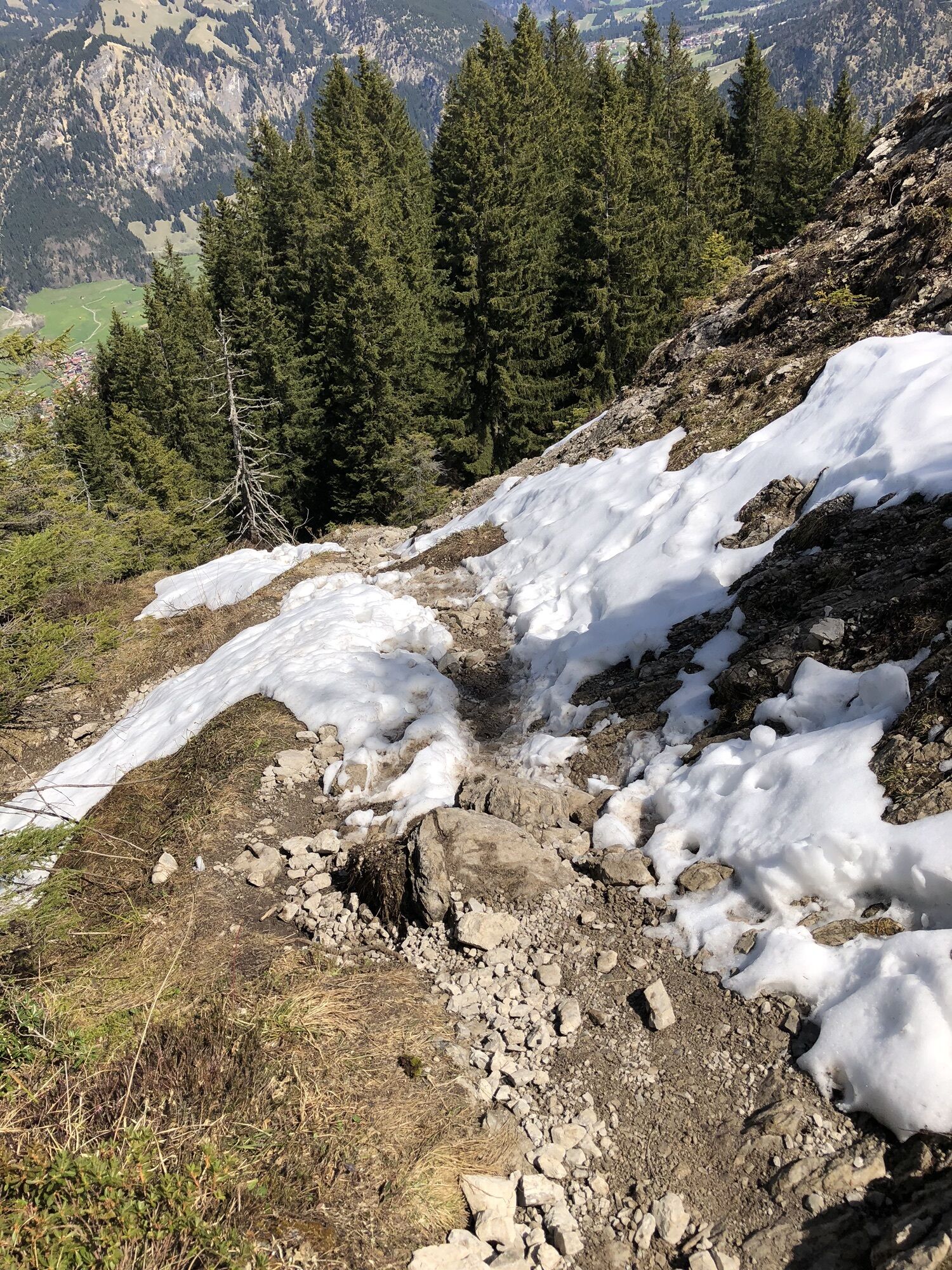 Sau schön, zwei verschneite, steile Berg. Hänge knifflig zu queren ; Grödeln, sehr empfehlenswert