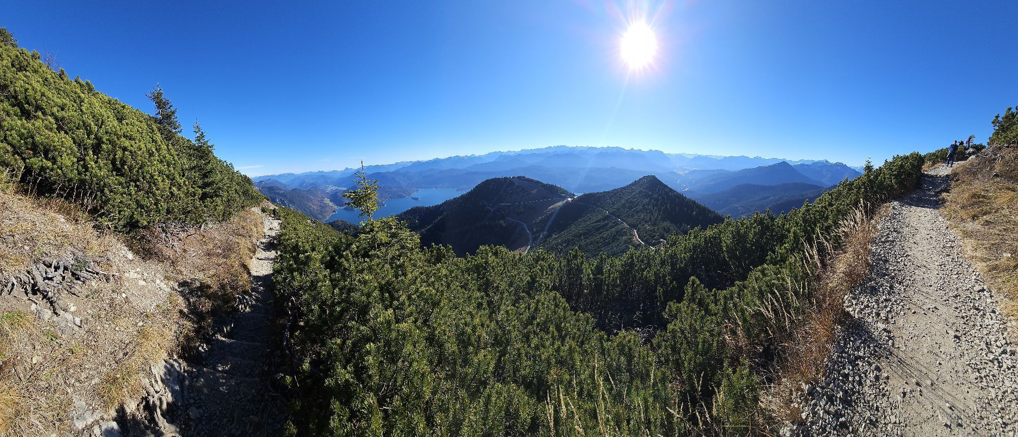 Vom Parkplatz in Walchensee auf den Heimgarten, über einen Grat auf den Herzogstand und weiter auf den Martinskopf. Von hier aus gehts wieder nach Walchensee.