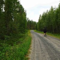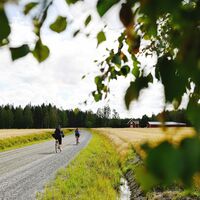 At the next crossroads, turn right onto Hirviharjuntie and stay on this road for 5.6 km. Then, take a left onto Sulkavankyläntie and continue for about 9 km. After this, turn right onto Koskipääntie, which changes its name to Sulkavantie at the border of South Ostrobothnia and Pirkanmaa. This stretch is 9.5 km long. When Sulkavantie comes to an end, turn left onto Road 66 and cycle for 1.5 km before taking a right onto a smaller road. This road is the second smaller road on the right. After 750 m, turn onto Rimmintie and stay on this road for 3 km until you reach a crossroads, where you turn right onto Sapsalammintie. Cycle for 4 km until you reach the next crossroads, where you turn right onto Nesteentie and continue for a couple of kilometres until you arrive at Virtaintie (Road 66). Travel along this larger road for 5 km and turn onto Jokivarrentie for 6.6 km, before returning to Road 66. There is a cycle path along this stretch. Cycle for 2 km and then turn left. You are now on Isokaari, which takes you to the Kuulantie crossroads (1.3 km away), where you turn left and cycle for a kilometre to Road 18. Stay on this road for 25 km all the way back to Kalajärvi. After 9 km, the road number changes to 672.