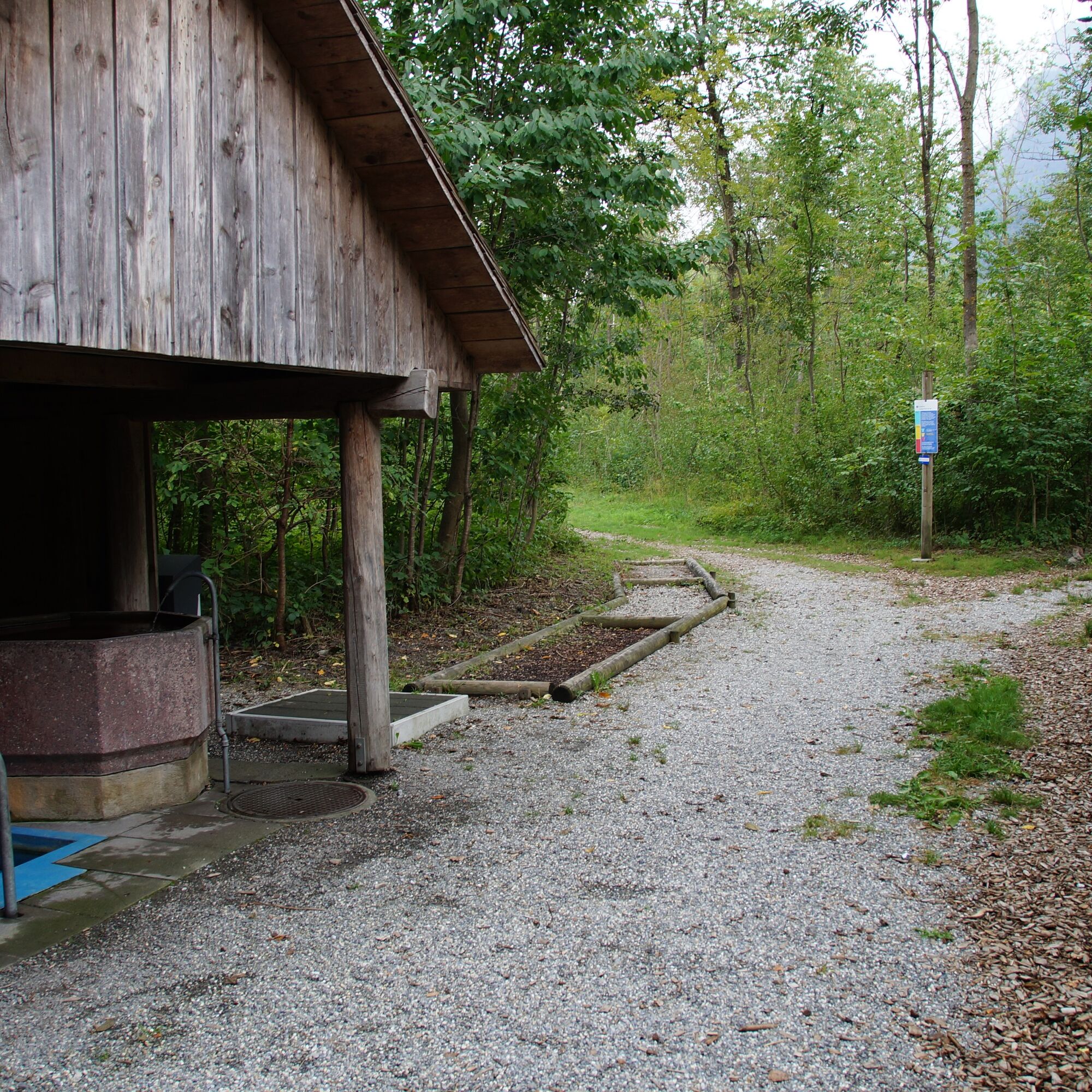 Am Start- und Endpunkt des Vitaparcours befindet sich ein überdachter Trinkbrunnen sowie ein Kneipp-Becken.