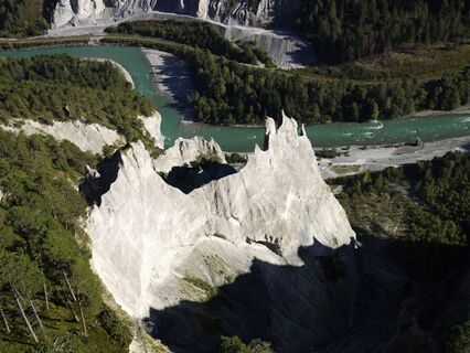 Diese abwechslungsreiche Rundstrecke beginnt in Staderas. Auf Forstwegen fahren Sie durch den Laaxer Grosswald bis zum Aussichtspunkt, an dem Sie die Rheinschlucht sehen können. Sie befinden sich auf dem Höhenweg, der bis im Spätmittelalter als Transitstrasse ins Bündner Oberland benützt wurde. Vorbei an Maiensässe geht es nach Foppas, wo sich eine Feuerstelle befindet. Kurz vor Sagogn kommen Sie an den Mauerüberresten der Burg Schiedberg vorbei. Falls Sie mehr über die Kulturgüter der Region erfahren möchten, können Sie dies im Platta Pussenta Büchlein nachlesen. Nach kurzer Zeit erreichen Sie Sagogn, danach geht es ziemlich steil auf einem Bergwanderweg aufwärts bis zur Hauptstrasse. Nach einem kurzen Stück entlang der Hauptstrasse kommen Sie wieder auf Nebenstrassen bis nach Staderas.