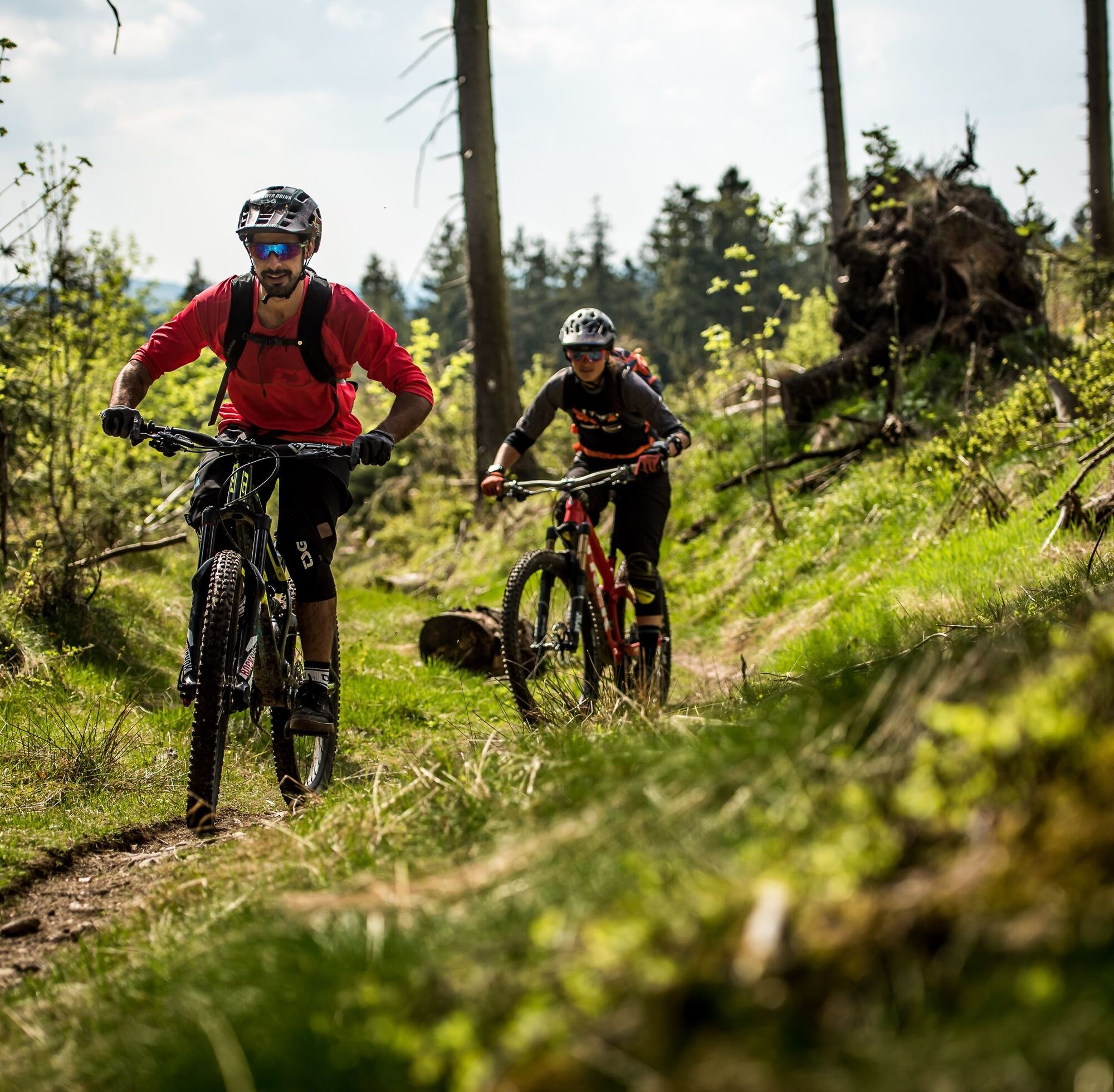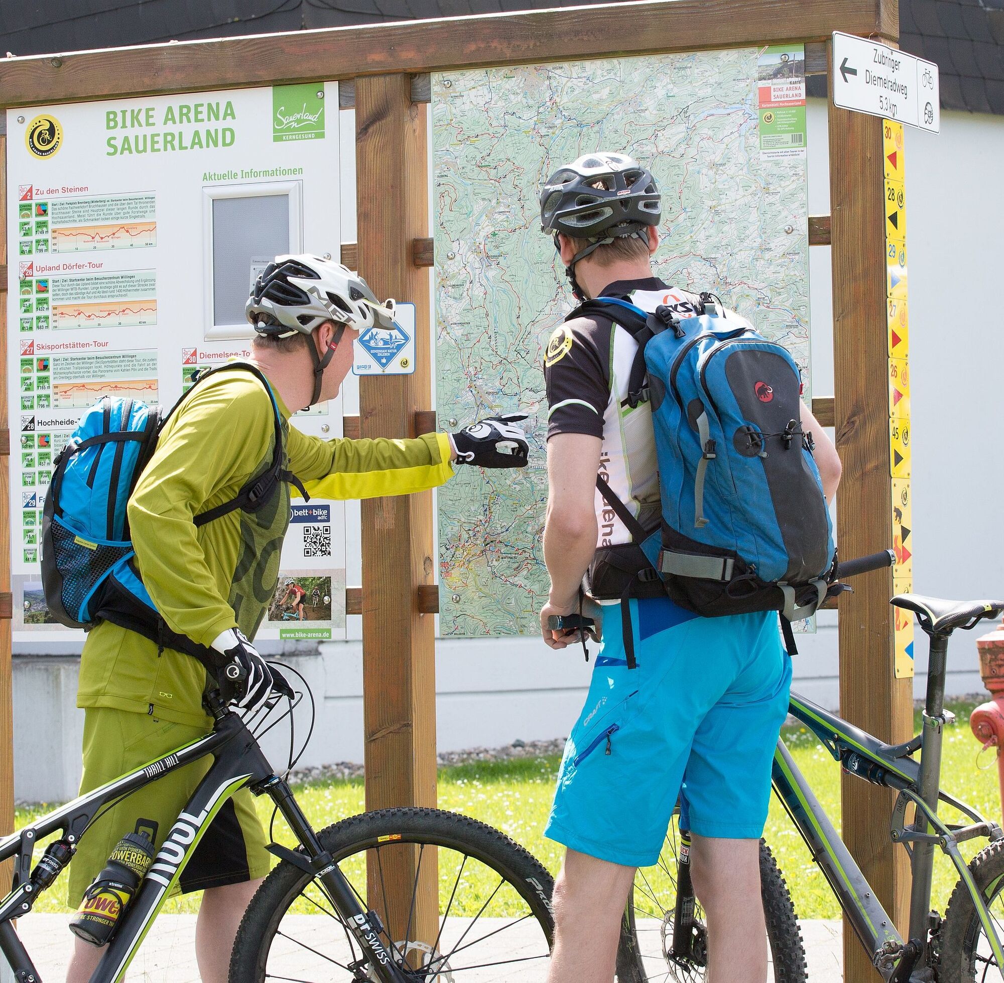 Zu Beginn führt die Strecke gemächlich, aber stetig durch das Hoppecketal bergan. Entlang der Landesgrenze Hessen/Nordrhein-Westfalen geht es über den Hillekopf nach Küstelberg und weiter nach Elkeringhausen. Einige Kilometer später ist Winterberg erreicht, neben Willingen das zweite Zentrum des Mountainbike- und Wintersports im Sauerland. Hier bieten sich natürlich etliche Einkehrmöglichkeiten. Anschließend geht es erst einmal bergab bis nach Niedersfeld. Nach dem Anstieg zum Ochsenkreuz kommen die Biker in das beschauliche Bruchhausen und fahren unterhalb der Bruchhauser Steine über die Rhein-Weser-Wasserscheide. Hier ist es fast geschafft: Die letzten Kilometer geht es auf einem nur leicht ansteigenden Forstweg zurück nach Willingen.