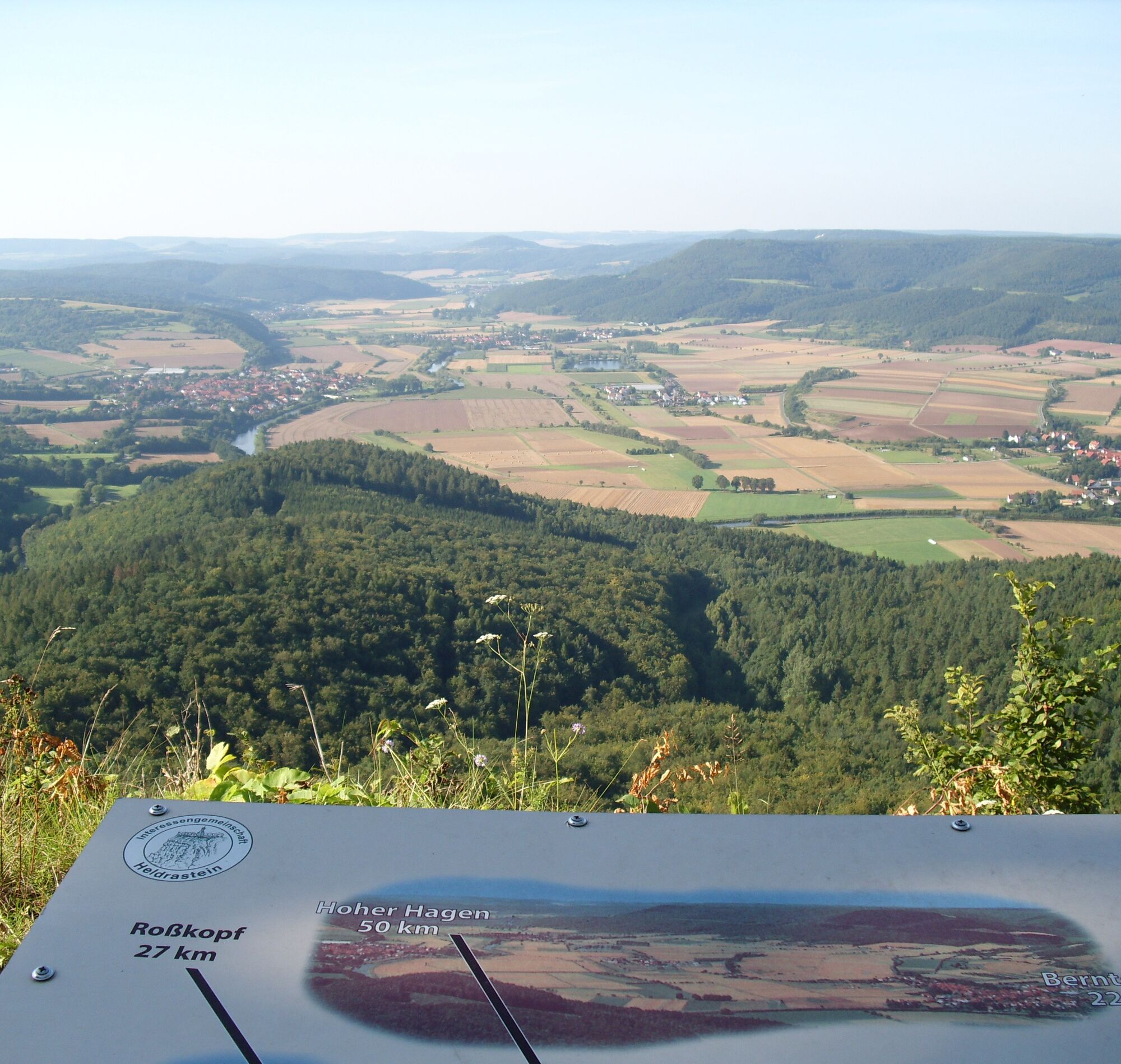 Die Aussicht vom Turm der Einheit auf dem Heldrastein, außergewöhnliche Flora und Fauna auf dem Muschelkalkplateau im früheren Grenzgebiet, heute zwischen Hessen und Thüringen, prägen diese sportliche 12 km Tour.