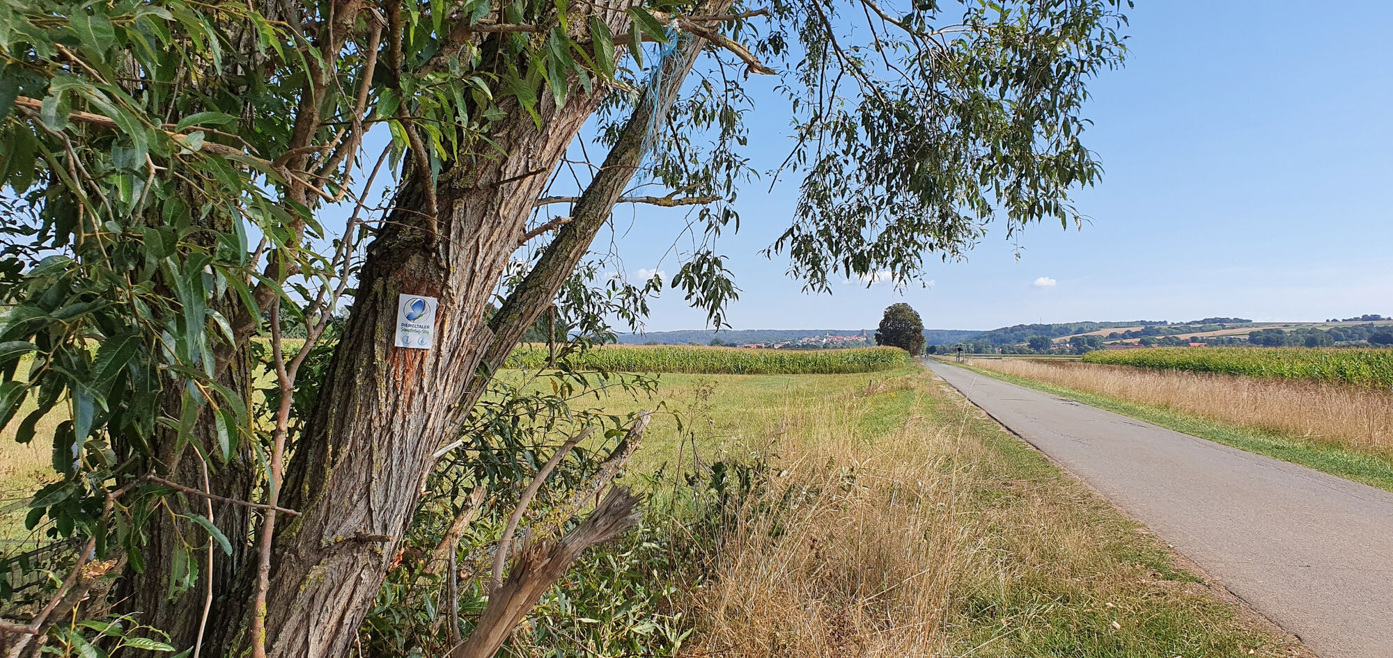 Die Etappe beginnt im Liebenauer Ortsteil Zwergen, der an der Warme liegt. Von hier aus geht es am Freibad entlang das Tal hinauf, zwischen Feldern und Äckern. Bald erkennt ihr das Vulkangestein der Warburger...