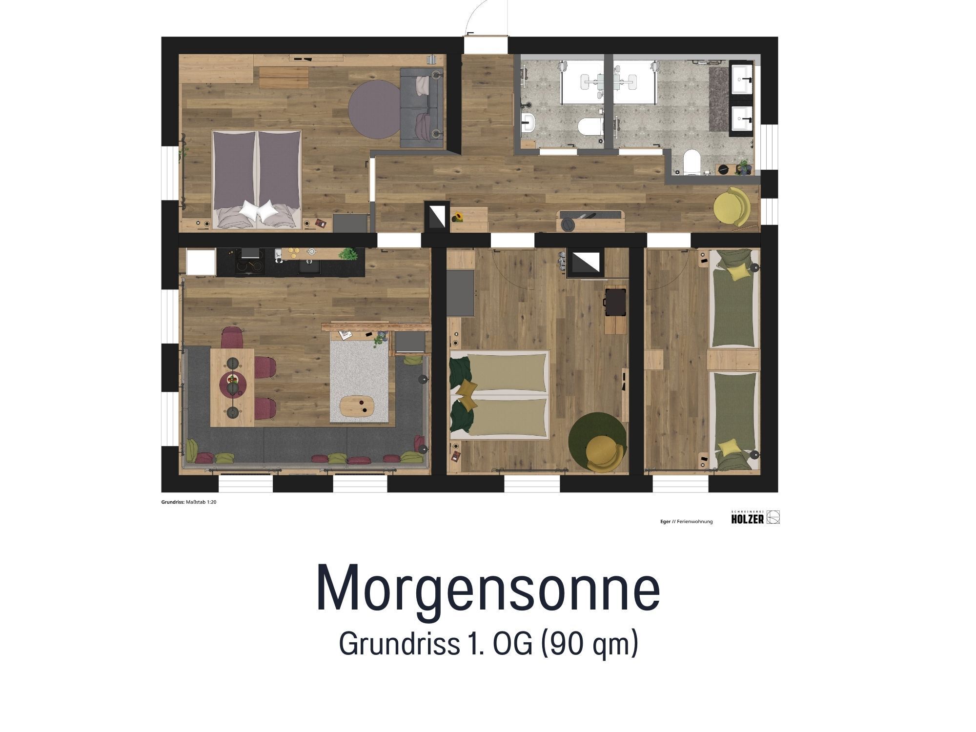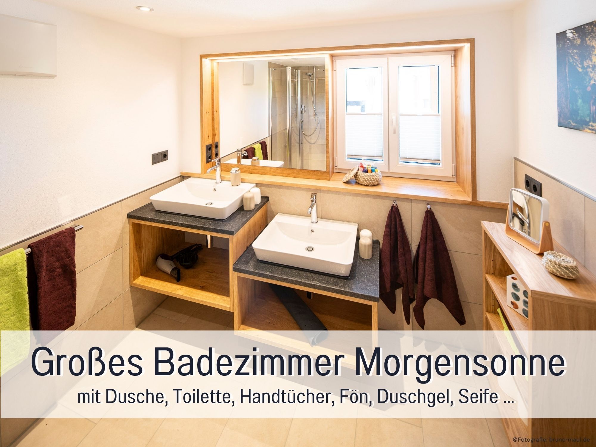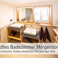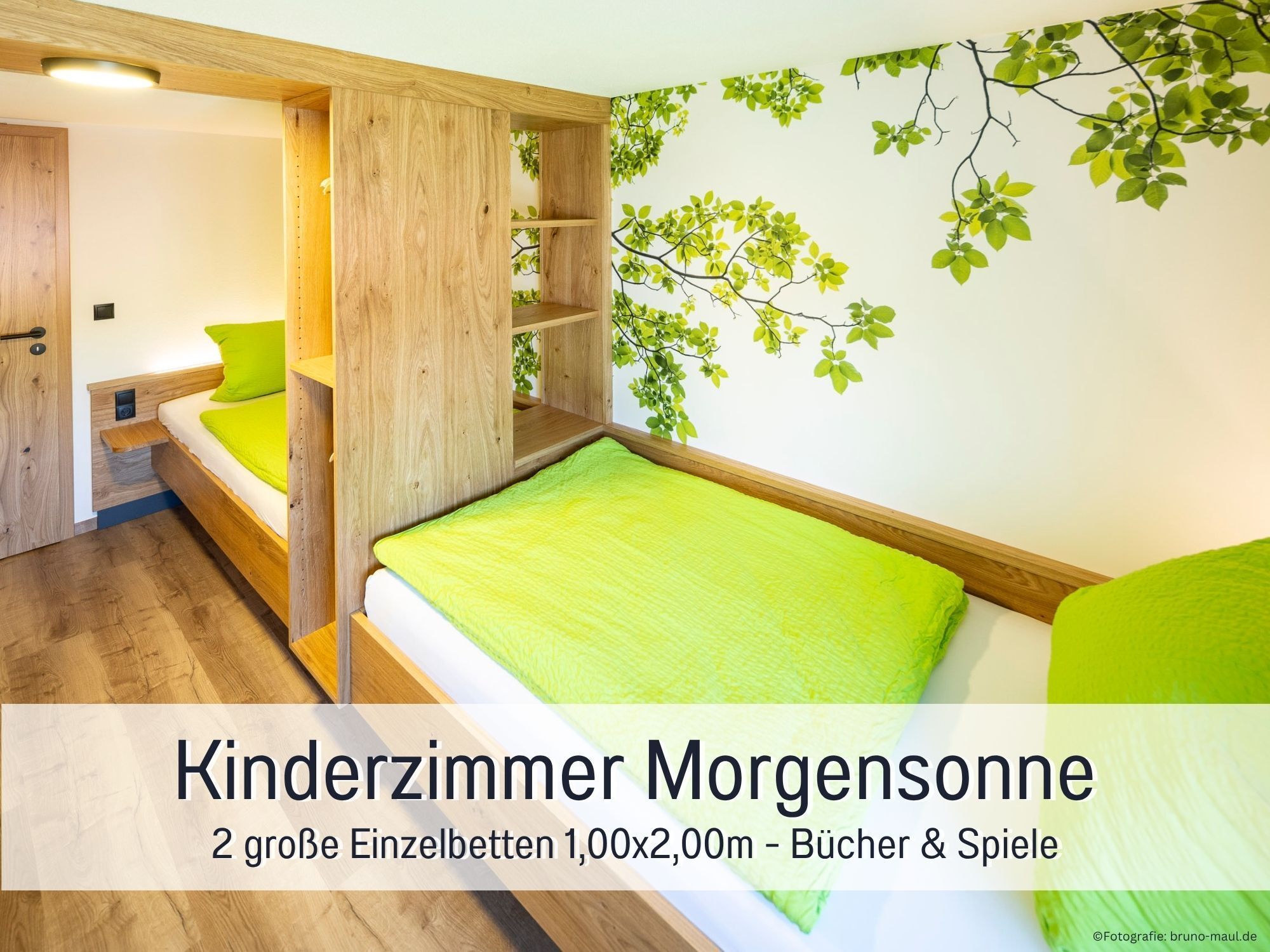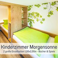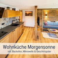 Drei komplett ausgestattete Ferienwohnungen (55 – 90 m²) mit 2–3 Schlafzimmern, Wohnküche, Balkon/Terrasse und viel Komfort für Familien – inkl. Kinderbett, Hochstuhl & Co. Kinder bis 14 Jahre übernachten für nur 10 €/Nacht.