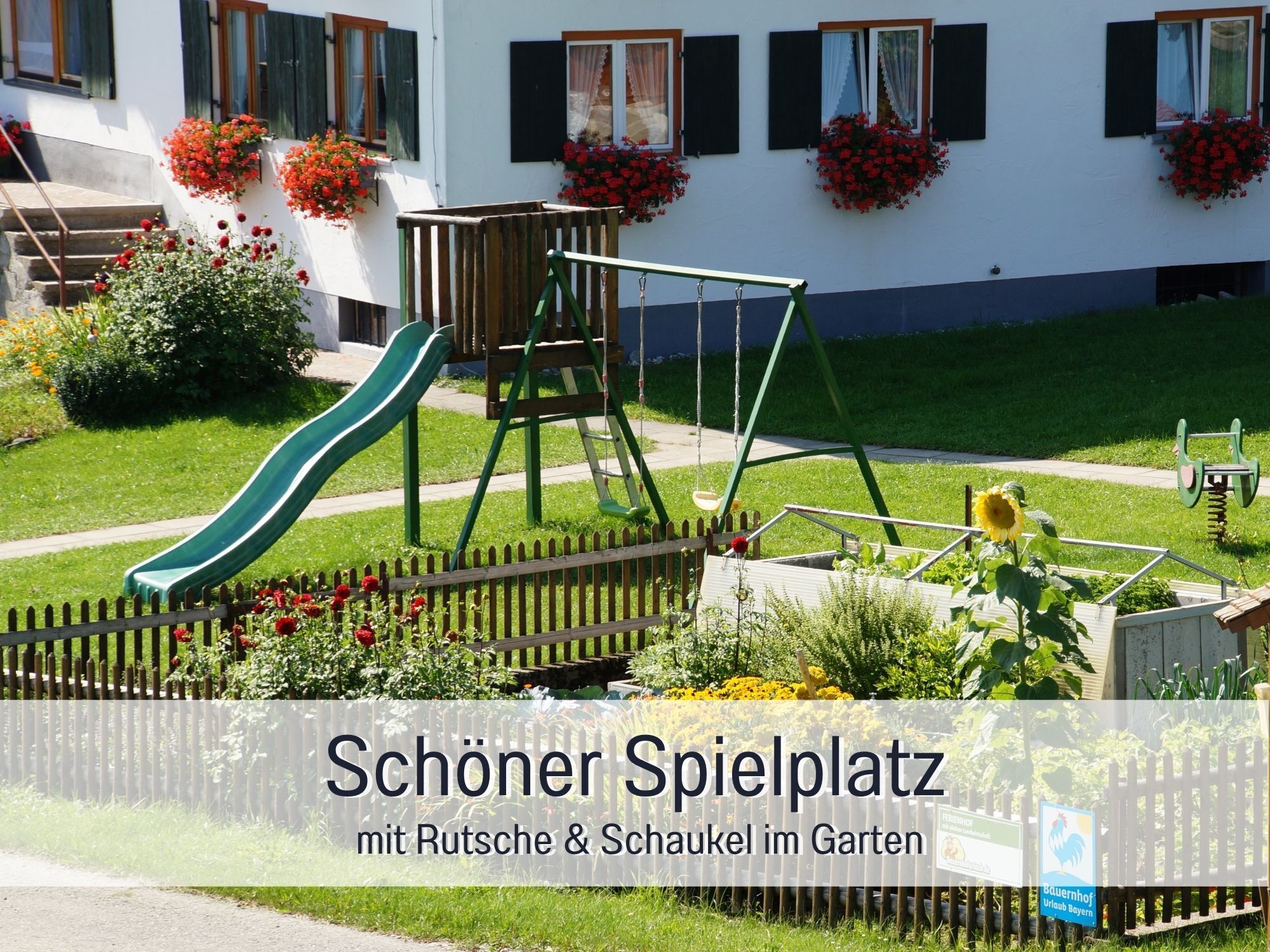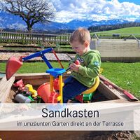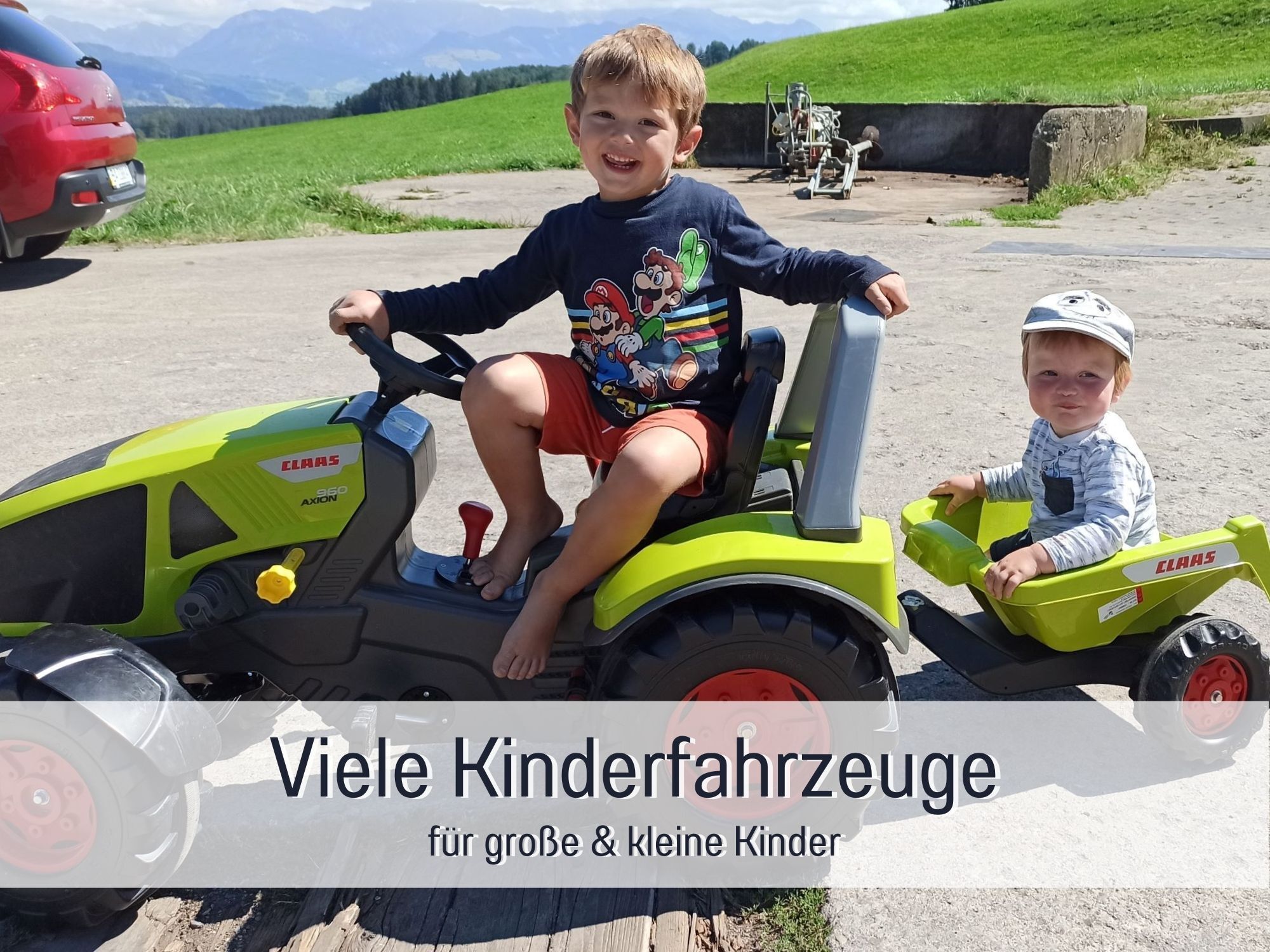 Großer Spielbereich: Trampolin, Spielplatz, Kinderfahrzeuge, Kicker & Fußball
