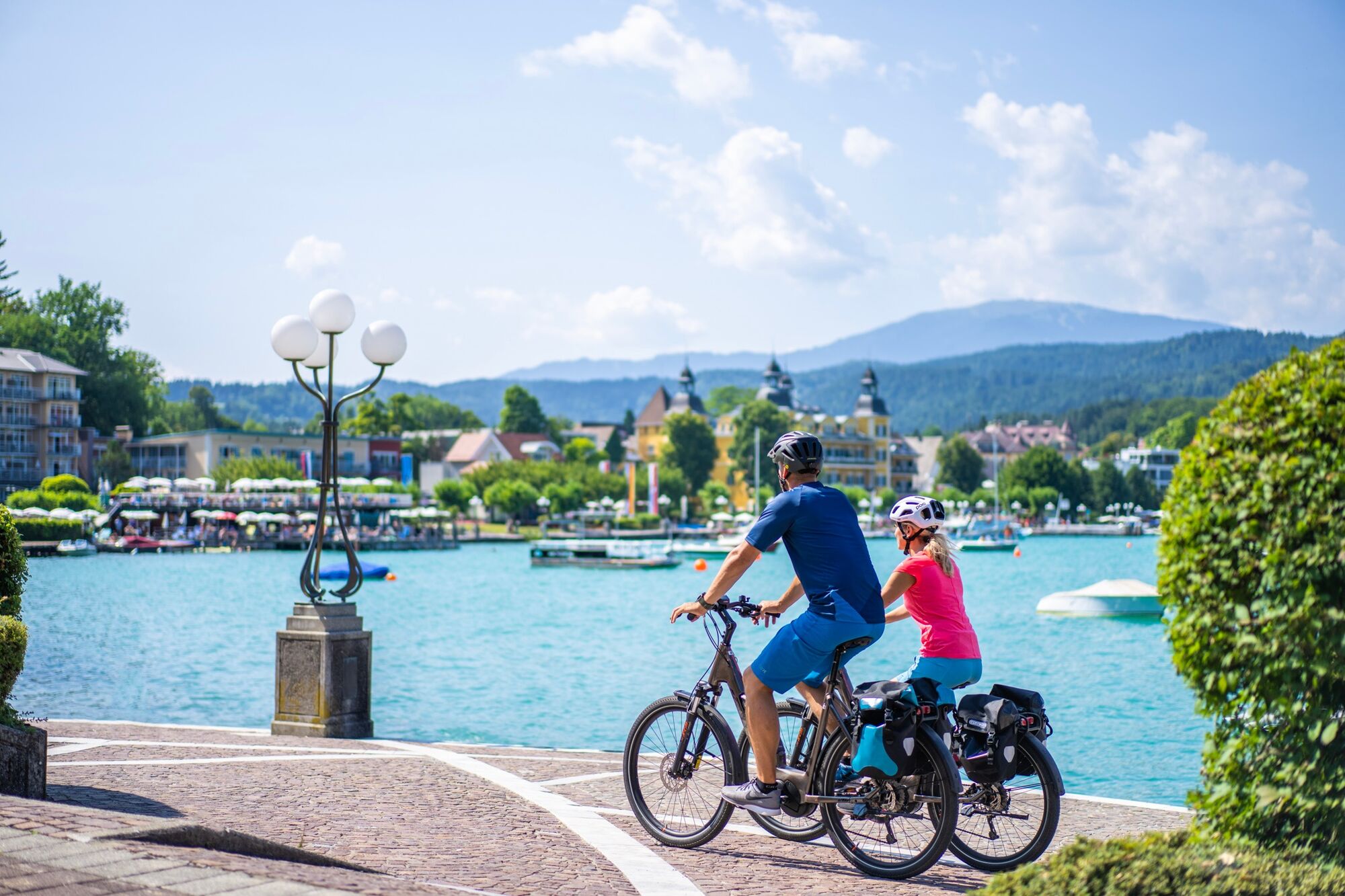 Heute heißt es Abschied nehmen von den Kärntner Seen. Von der Seepromenade in Velden geht es entspannt zurück an den Drauradweg, der sich auf der Nordseite des Flusses noch einige Kilometer in Richtung Villach schlängelt. Die Kärnten Seen-Schleife schließt sich nach 350 Kilometern und vielen unvergesslichen Eindrücken wieder an der markant roten Friedensbrücke im Osten der Draustadt.