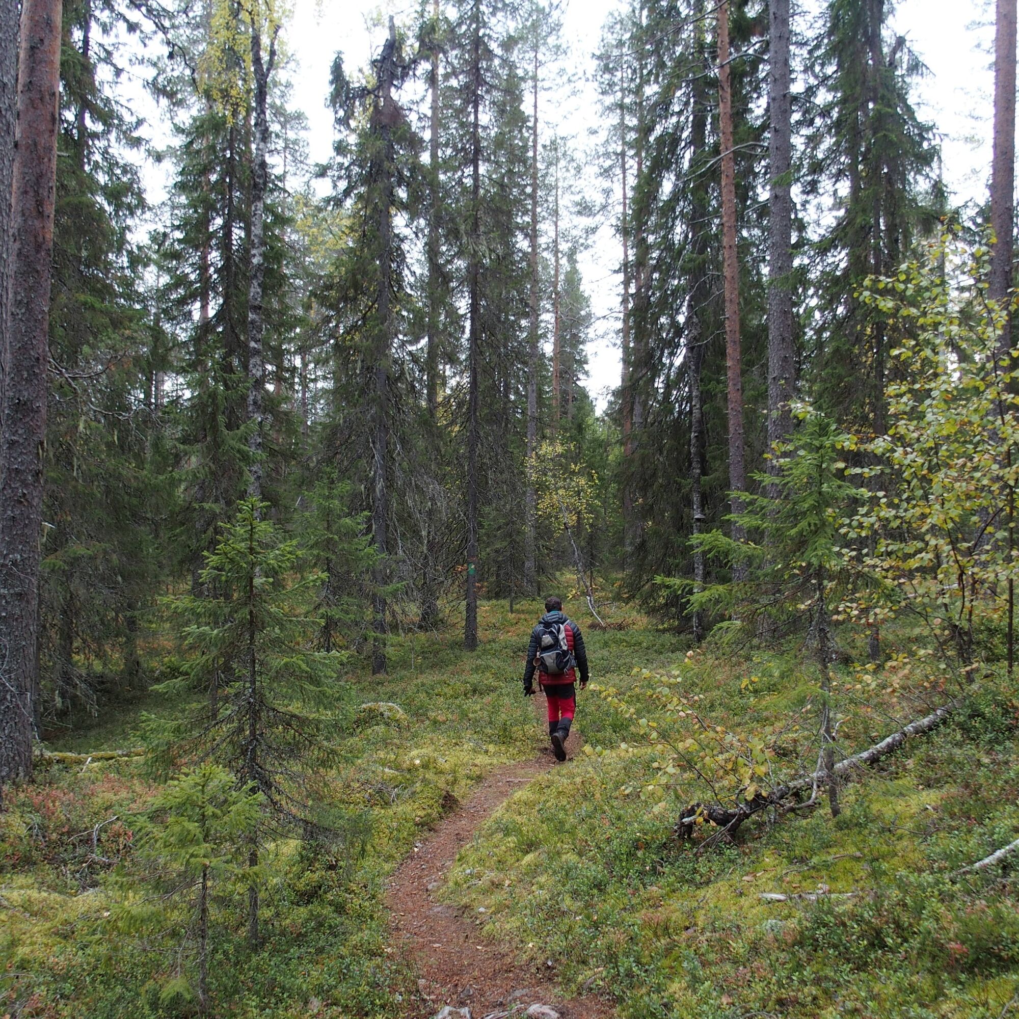 Die Route eignet sich gut als Tagesausflug für Familien, dank ihrer Länge und der geringen Höhenunterschiede. Beachte jedoch, dass insbesondere der Abschnitt entlang des Syväjoki Flusses stellenweise felsig und wurzelig ist.