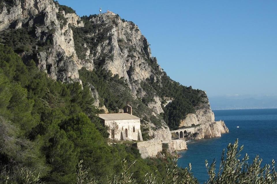 Am Ende der Straße „Via degli Orti“ nehmen Sie den Pfad, der mit einem roten X markiert ist. Gehen Sie in Richtung „Punta Crena“. Ein kurzer Abstecher nach rechts bringt Sie zu der mittelalterlichen Kirche...