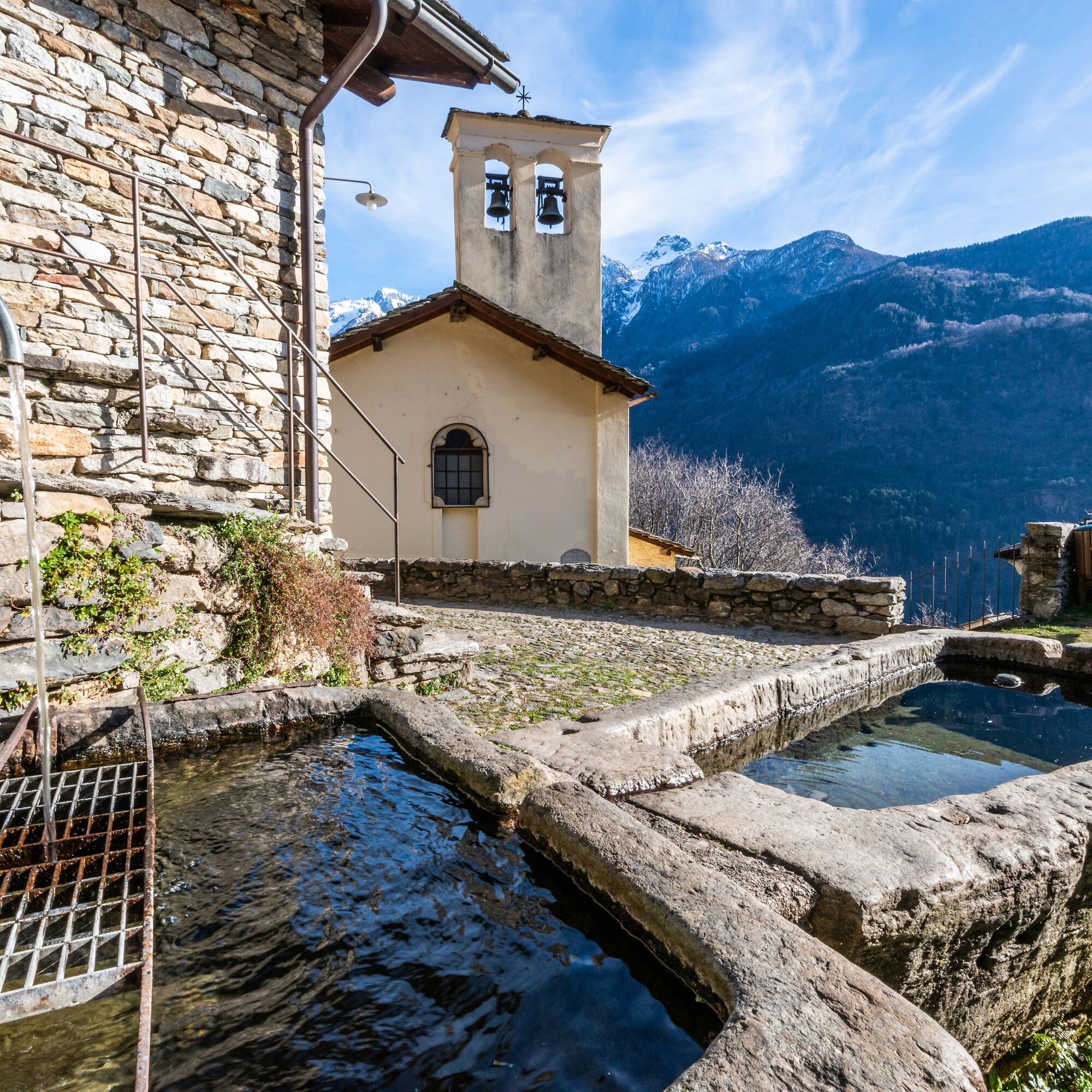 Durch das historische Zentrum von Chiavenna erreicht man den Weiler Loreto und folgt der Beschilderung nach Campedello/Crotti Freege. Dies führt zum Weiler Cranna, einem beliebten Kleinod. Dies ist auch ein Verdienst der Hausbesitzer, die sich um die Sauberkeit des Dorfes bemühen. Wir befinden uns etwa hundert Meter oberhalb von Prosto, auf einer Höhe von etwa 550 Metern. Von hier aus sieht man einen großen Teil des italienischen Bergells mit seinen majestätischen Gipfeln und das Dorf Chiavenna. In Cranna lohnt es sich, die Kirche St. Joseph zu besichtigen, die 1674 an der Stelle einer früheren Kapelle zum Schutz vor den Wölfen errichtet wurde, die das Gebiet heimsuchten.