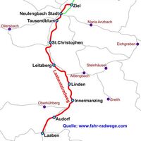 Streckenlänge: 15,7 km Strassenbelag: Asphalt Bergauf: 14 Höhenmeter Bergab: 132 Höhenmeter Profil: leicht Beschilderung: fast perfekt Route: Start in Laaben beim Hotel Post 2,4 km Audorf 3,3 km Neustift-Innermanzing...
