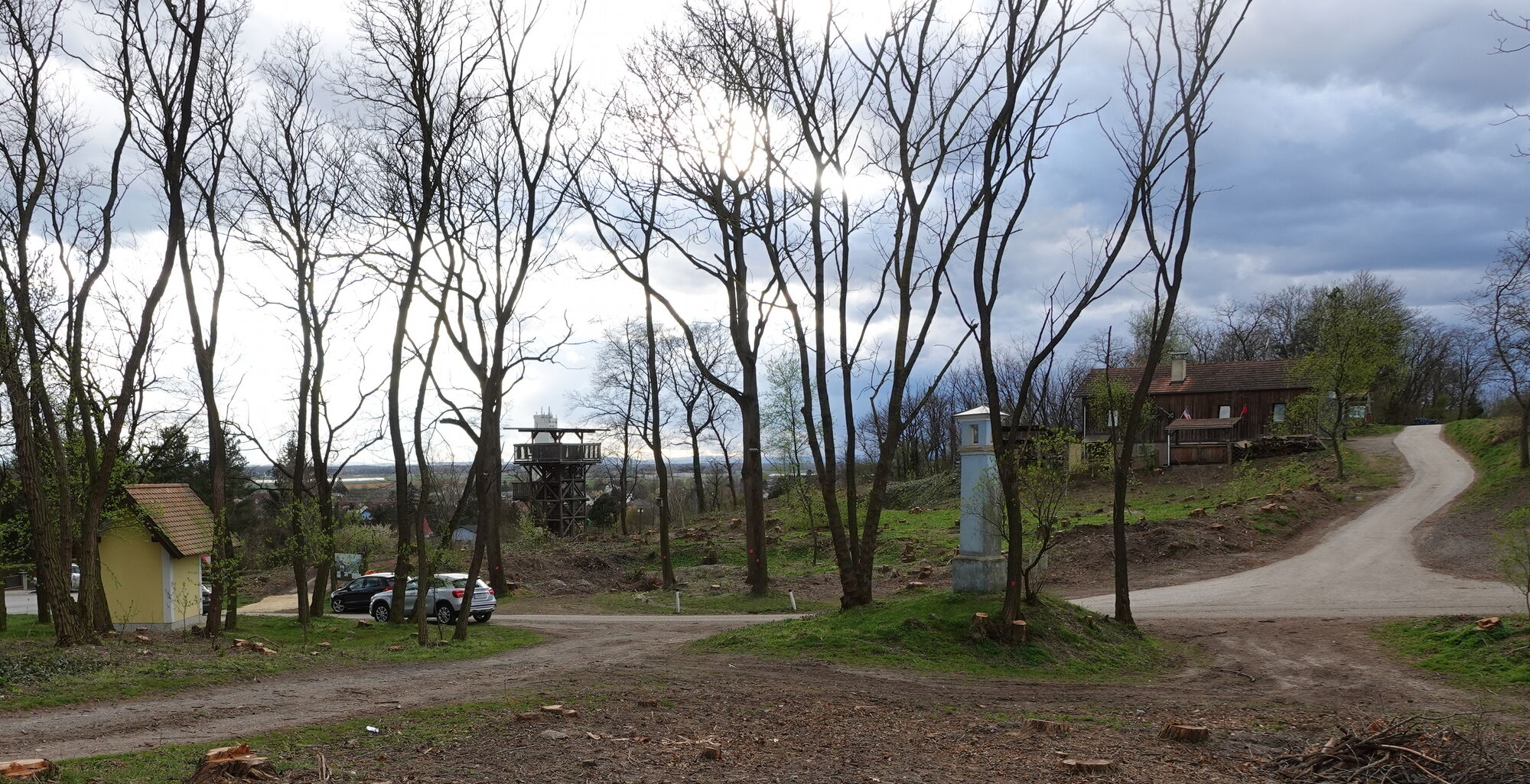 Beginn des Spazierganges ist vom Parkplatz PKW am Brunnberg nahe Warte weg. Aufstieg auf die Warte mit eher wenig Aussicht obwohl rundum der Wald gerodet wurde.