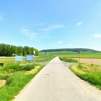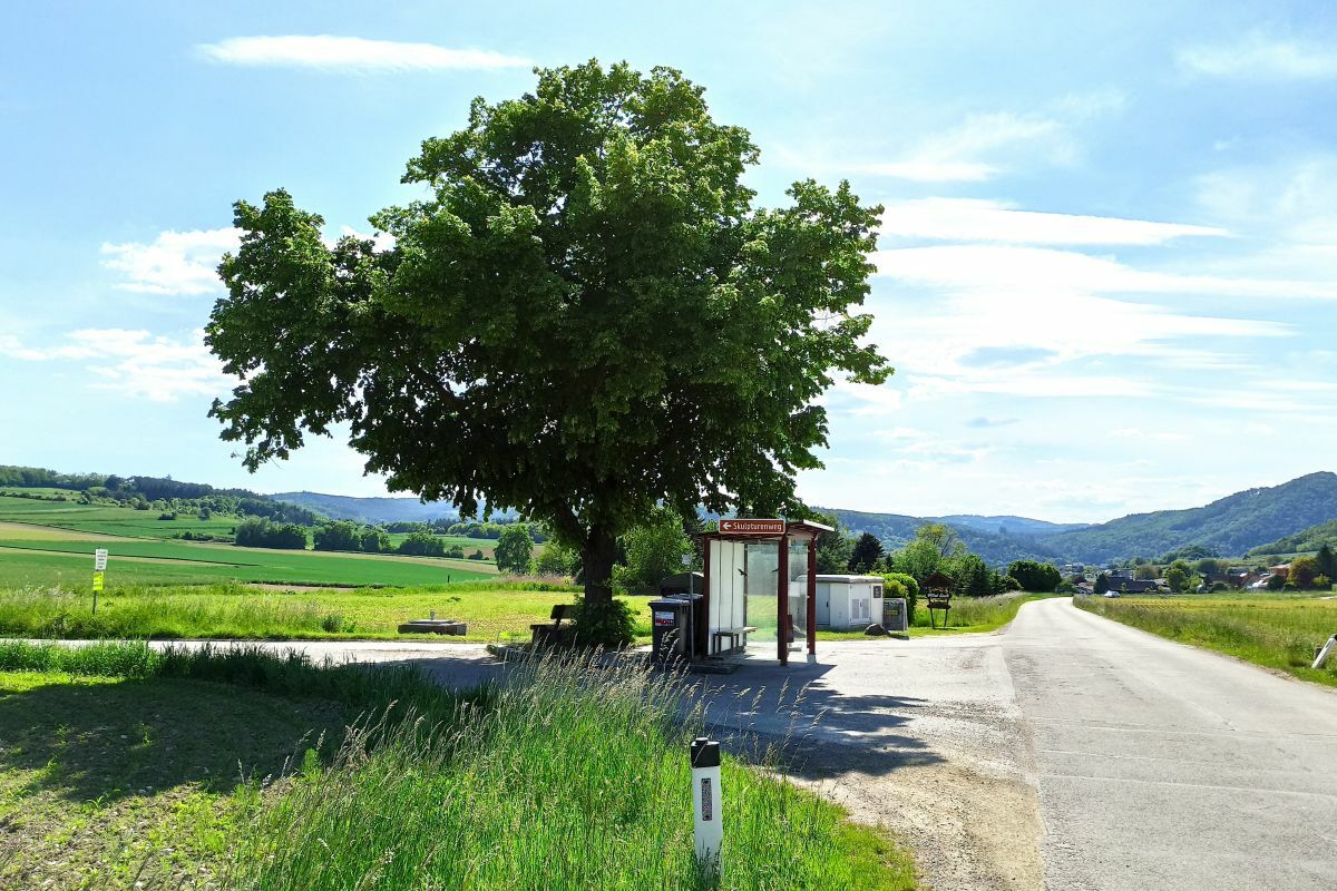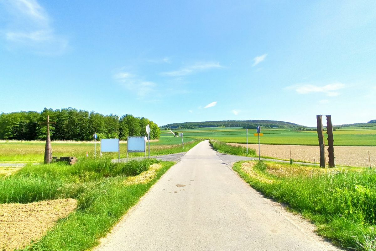 Parkplatz an der L7096 am nördlichen Ortsende von Krustetten.