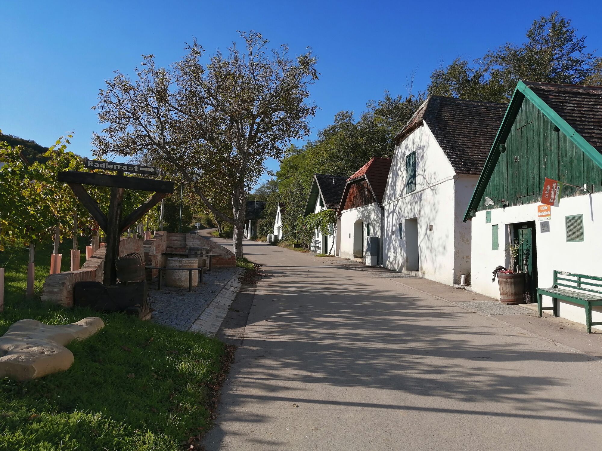 Nun folgt man dem asphaltierten Güterweg in die Kellergasse "Rosenpoint" mit den schön gelegenen Presshäusern. Hier lädt auch die Radlerrast zu einer kurzen Pause ein.