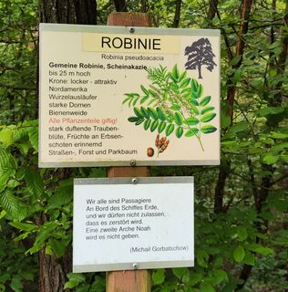 Von der Karlerstraße Bushaltestelle "Schanz" weg führt ein kurzer Forstweg, steht's geradeaus, bis das Ende des Weges erreicht wird. Start und Ende sind mit großen Tafeln gekennzeichnet, am Weg erfährt man Wissenswertes über Bienen und den Wald.