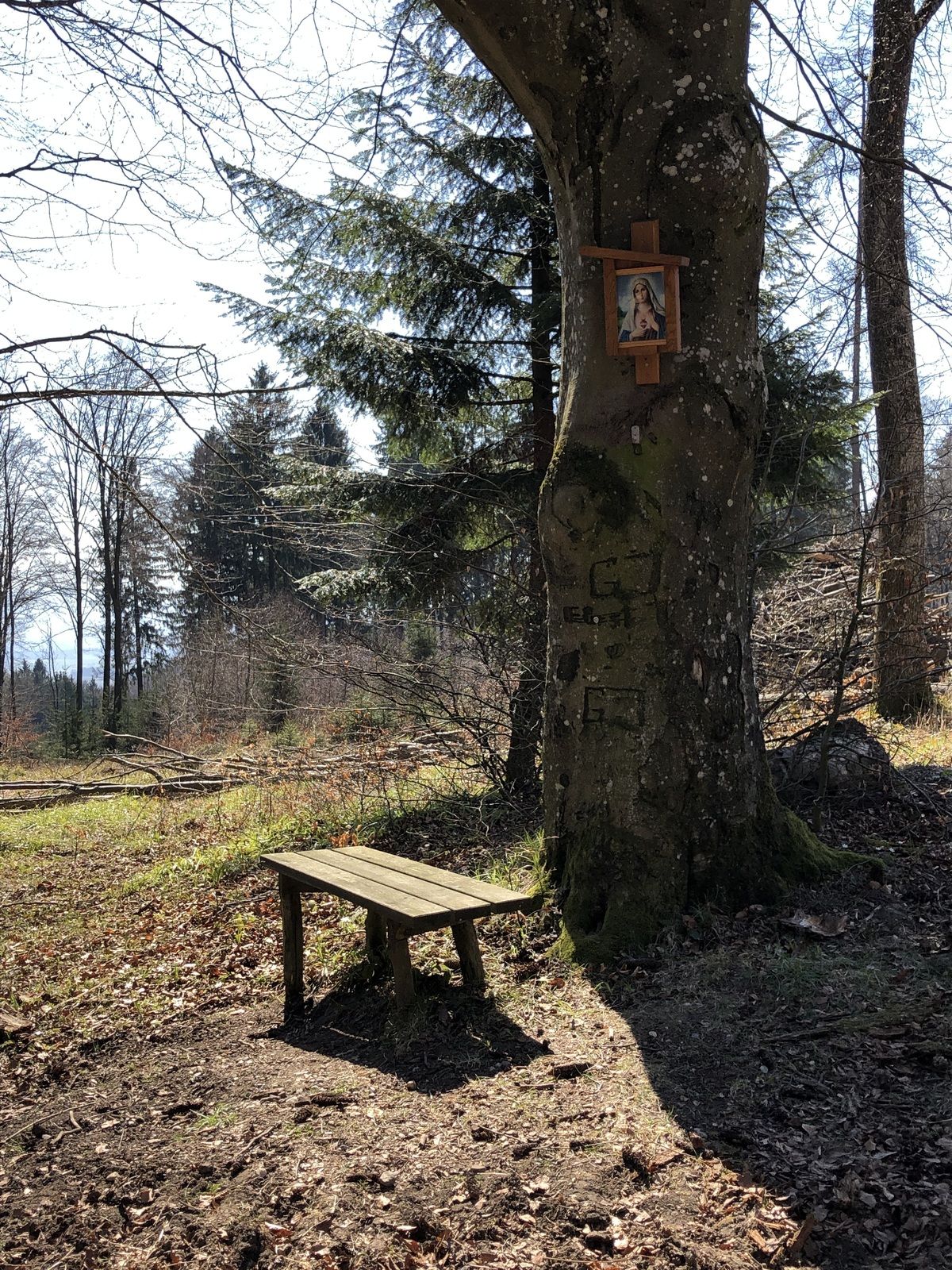 Statt vor der Pfadfinderhütte links nach unten abzubiegen, kann man eine kürzere Variante machen indem dass man bei der Hütte vorbei und weiter geradeaus geht bis man auf die eingezeichnete Tour stoßt.