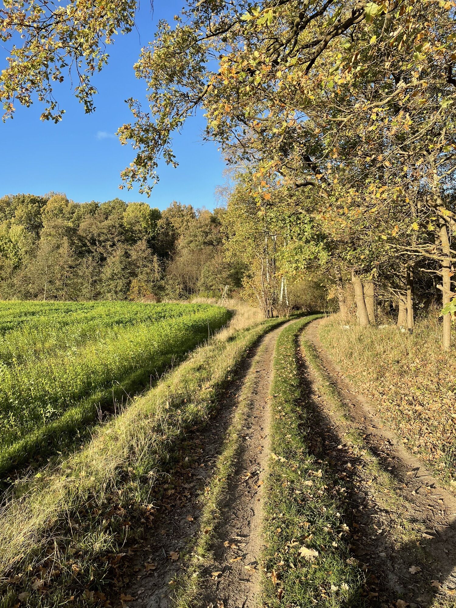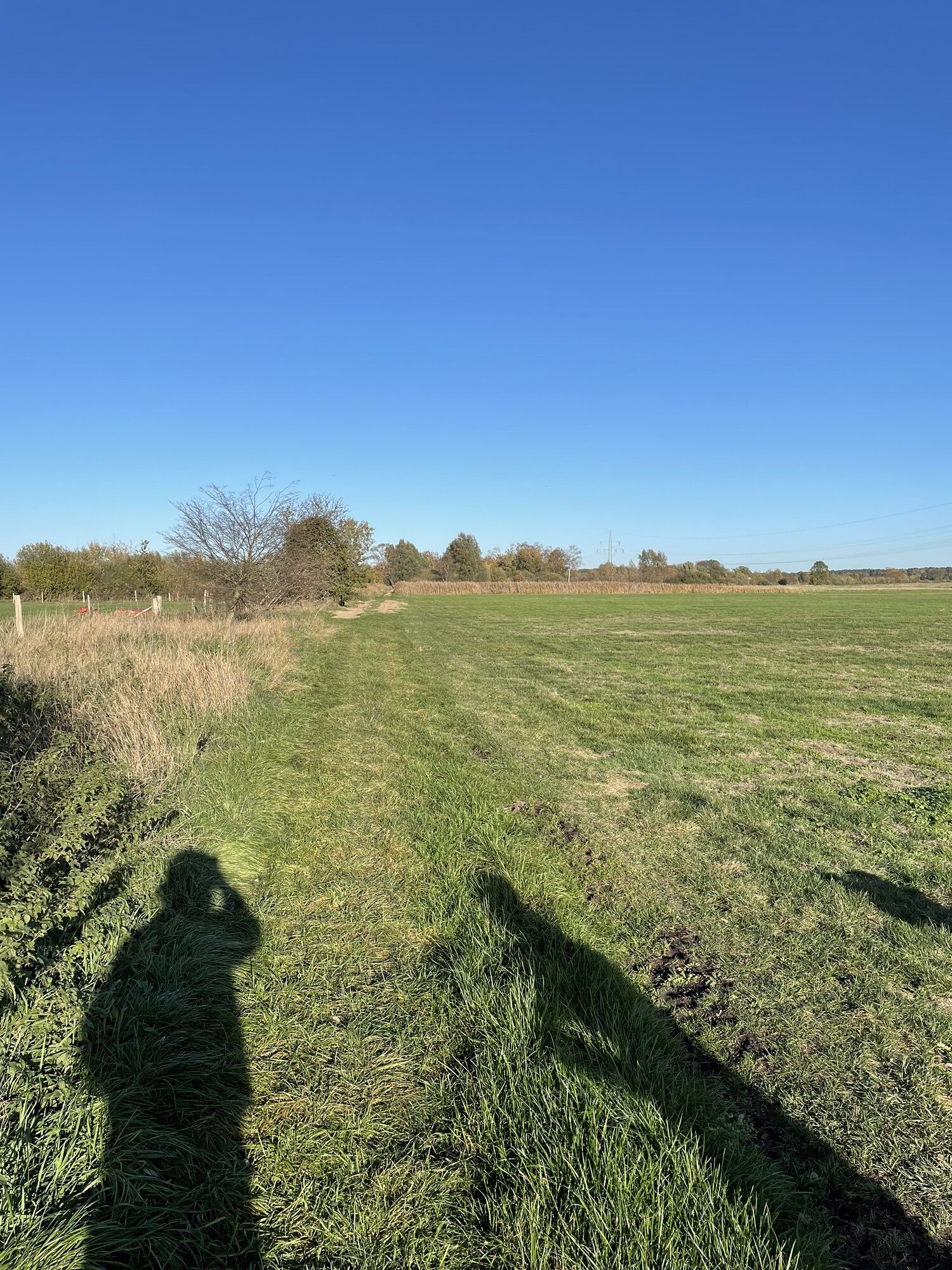Durch Felder und Wiesen entlang von Pferdekoppeln trifft dieser Rundweg immer kurz auf Hauptstraßen. Das ist erforderlich, da Bäche und Flüsse die Wege lenken - man muss halt wissen wo die Brücken sind....