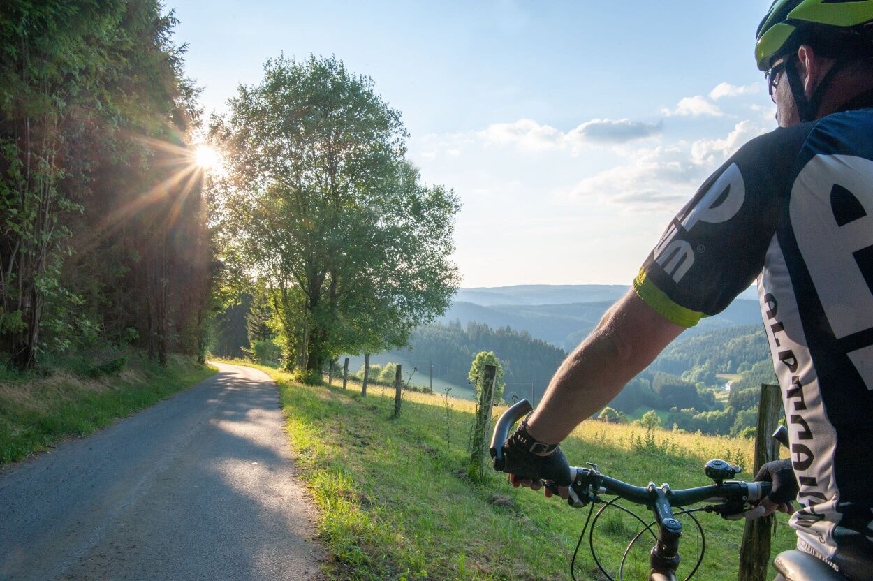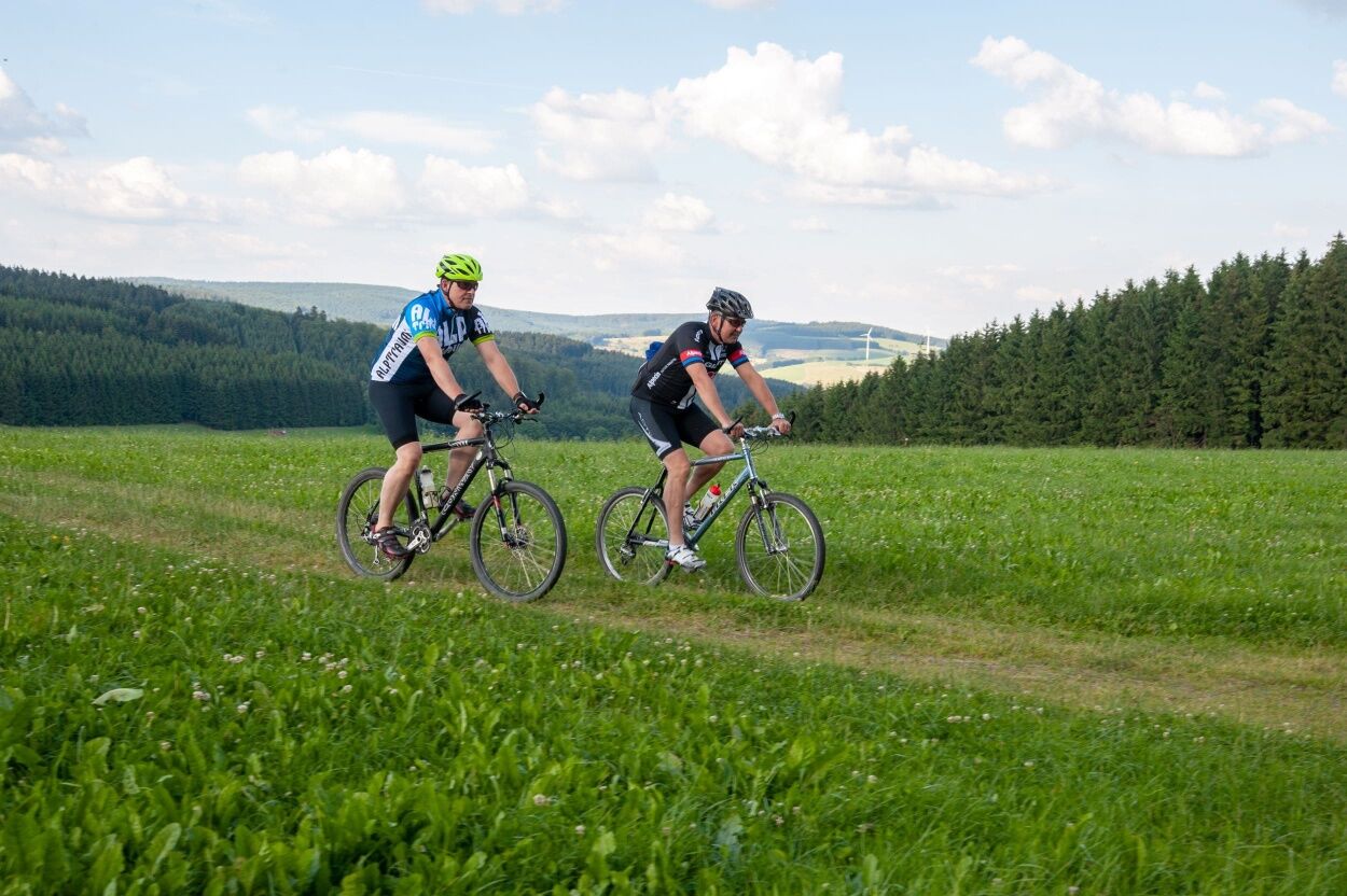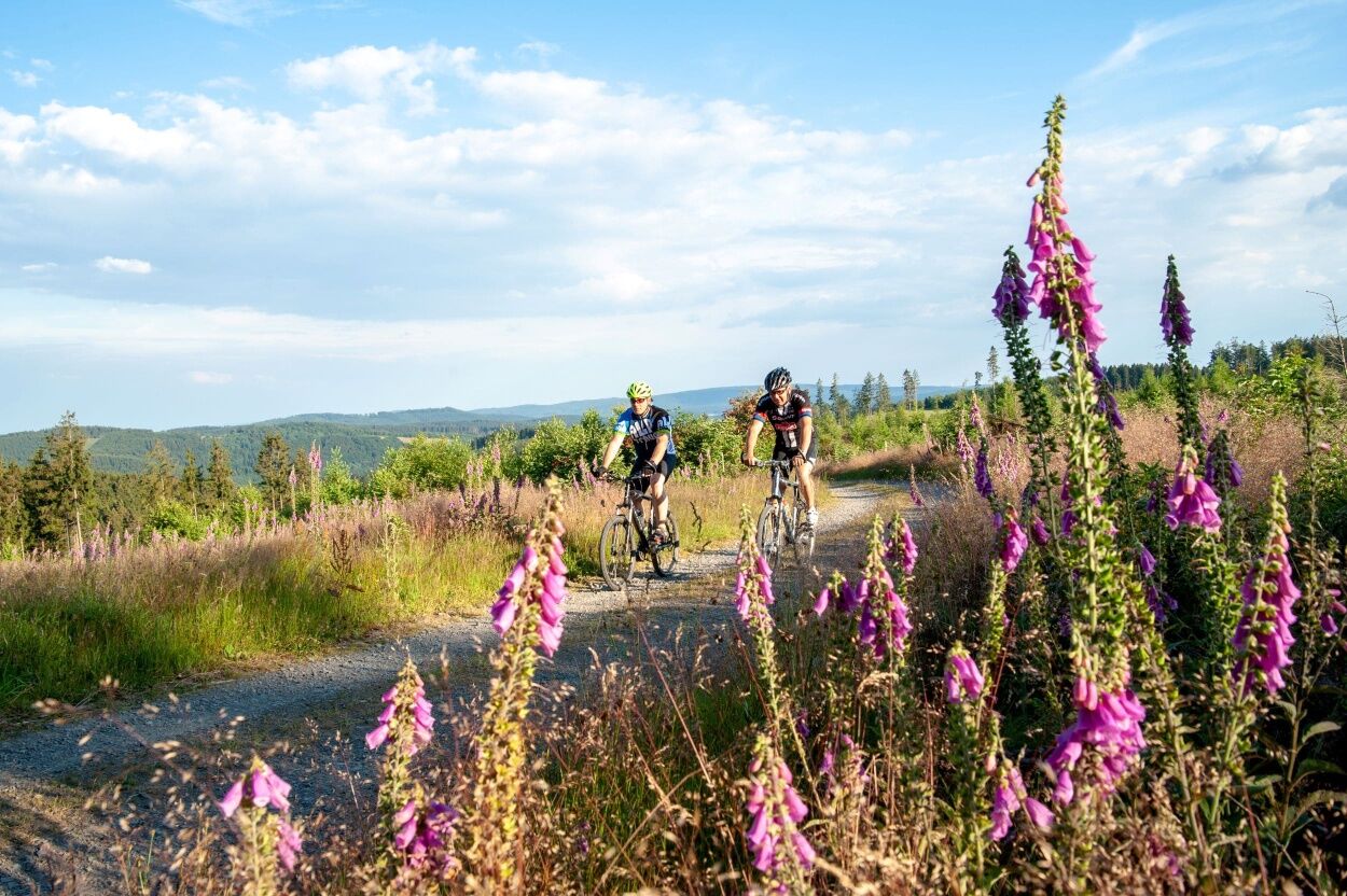 A few meters we cycle through the beautiful upper town, after we ride down through the Berlebach behind the castle park. It goes to the left, along the Odebornklinik and the Rothaarbad.