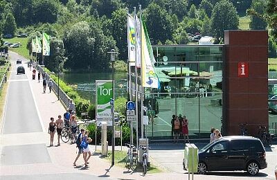 Start : Nationalpark-Tor und Eisenbachdamm überqueren