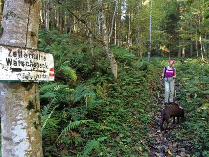 Der Startpunkt der Tour ist beim Gasthaus Rotbuchner (ca. 815 m). Gleich nach der Rechtskurve zeigt ein Hinweisschild „Zur Zellerhütte“ den Weg an (Weg Nr. 291). Man wandert durch bewaldetes Gebiet aufwärts...