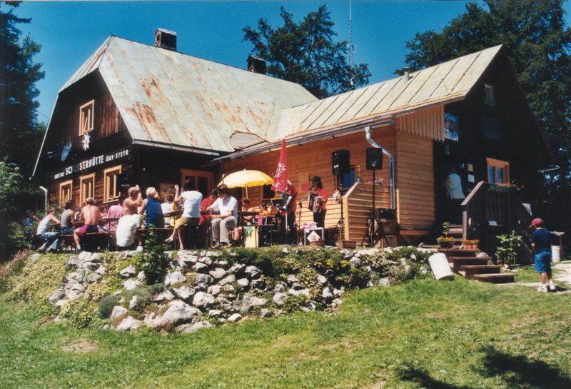 Noch höher als der traumhafte Ausblick über das Untere Ennstal steht bei manchen Zeitgenossen die Jausenpause in der Anton Schosser Hütte im Kurs, und daher liegt dieses Schutzhaus von altem Schrot und Korn auch noch 24 Meter höher: Nach der Gelenkverachtenden Überwindung eines wurzelgespickten Traktorweges samt Gatterhürde steht vor dem Kaloriennachschub noch eine mörderisch steile Schotterstraßenpassage an. Abgesehen von dieser Einlage, die retour ein zweites Mal gemeistert werden muss, werfen die Forstautobahnen um den Ennstaler Hausberg keine besonderen Hindernisse mehr vor die Stollenreifen, und so schaukelt man nach der Überfahrt zu den "Mösern" vergleichsweise beschaulich nach Trattenbach hinunter.