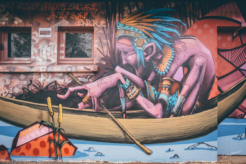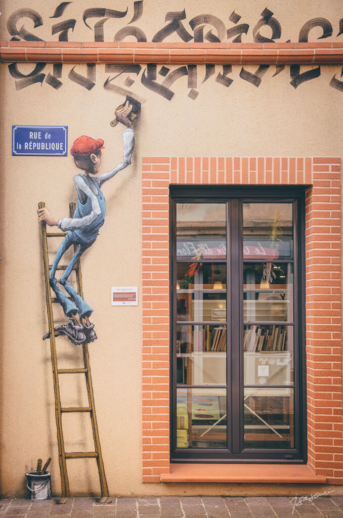 In Lombez, am Ufer der Save, kommen Sie an den Wandgemälden des Kollektivs Bayah Dezign (Maya, Mondé und Reso) vorbei. Diese Serie bildet eine Route von Werken, die alle aus Auszügen zeitgenössischer Poesie entstanden sind, in Partnerschaft mit dem Maison des Ecritures in Lombez.