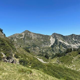 Start - Aire d'Accueil (1,950m). Cross the road and follow the signposted path and cairns up towards the ridge, at which point the GR turns south along the pastoral track. At the well-marked bend, leave the track, leaving the GR heading south, and take the path (yellow markings) just above, heading south-west. The path climbs steadily up the slope until it reaches the Mougnégou ridge, which you climb up, still south-west. The slope steepens as you approach the summit of Pic de Tarbésou.