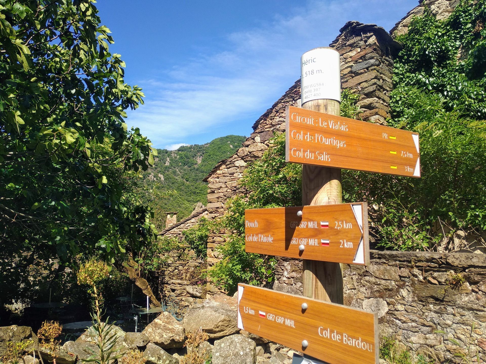 De la Maison des Montagnes du Caroux aux Gorges de l'Héric Départ à la Maison des Montagnes du Caroux, prendre la Voie Verte sur 800m pour rejoindre, le parking au bas des Gorges de l'Héric. Remontez le parking pour retrouver la route goudronéee montant au Hameau d'Héric.