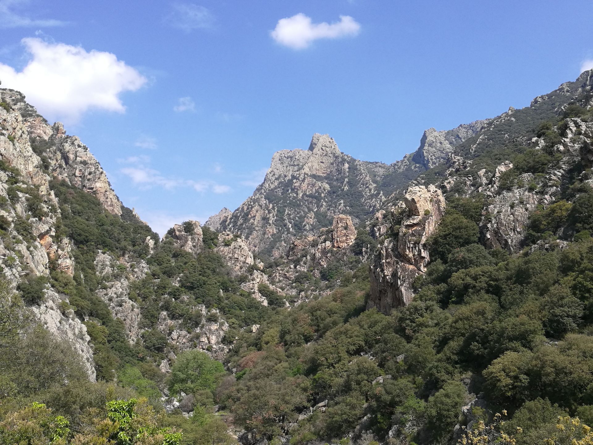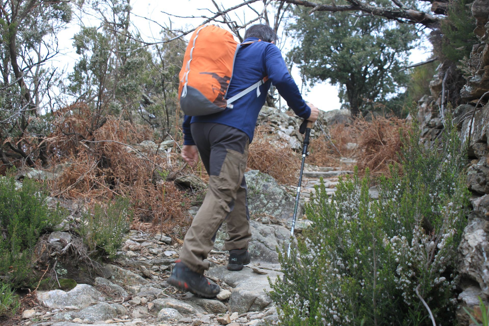 Montée vers le Col de Bardou Descendre dans les gorges d'Héric en suivant le balisage trail du parcours n° 5 Traverser le Pont d’Héric. Emprunter le sentier en montée, ombragé et régulier, jusqu’au Col de Bardou. - Option : accès au belvédère de Bau Filiti (200 m aller-retour) pour vue panoramique sur les aiguilles du Caroux.