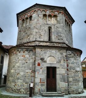 Agrate, Parish Church of San Vittore –Baptistery of San Giovanni: Mentioned for the first time in 976, the parish church was rebuilt in the Romanesque period but renovated many times through the centuries. The 11th-century Baptistery of San Giovanni has a lower irregular plan and an upper octagonal plan. It is adorned with elegant hanging arches and stone columns.