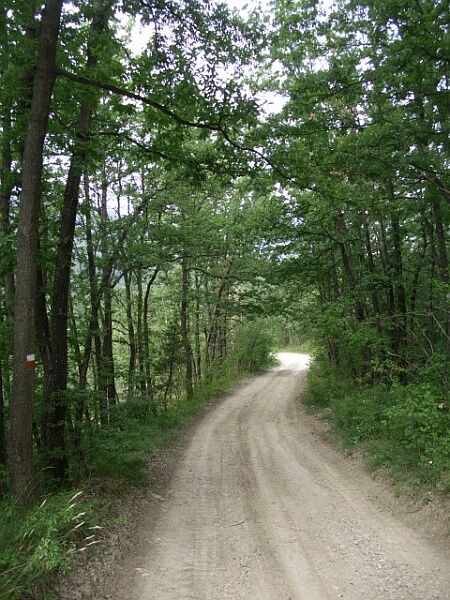 La mulattiera raggiunge la linea di crinale e prosegue all’interno del bosco xerofilo con roverella (Quercus pubescens), cespugli di erica (Erica arborea) e ginestra (Spartium junceum); giunto ad un trivio il percorso fa una piccola deviazione rispetto alla mulattiera principale per continuare diritto e risalire su un piccolo poggio panoramico, sulla cui cima si trova un traliccio della linea elettrica.Il sentiero scende dal poggio e si ricollega alla mulattiera principale, seguendo sempre il crinale boscato e arriva ad un grosso incrocio, dove svolta seccamente verso destra, portandosi così in direzione nord, per scendere lentamente di quota.Il percorso supera un piccolo impluvio e quindi giunge all’antica Villa Rettorato (403m), caratterizzata da un bel viale di querce, che ancora allude ad una piccola oasi di pace, circondata da bellissimi esemplari di rovere (Quercus petraea).