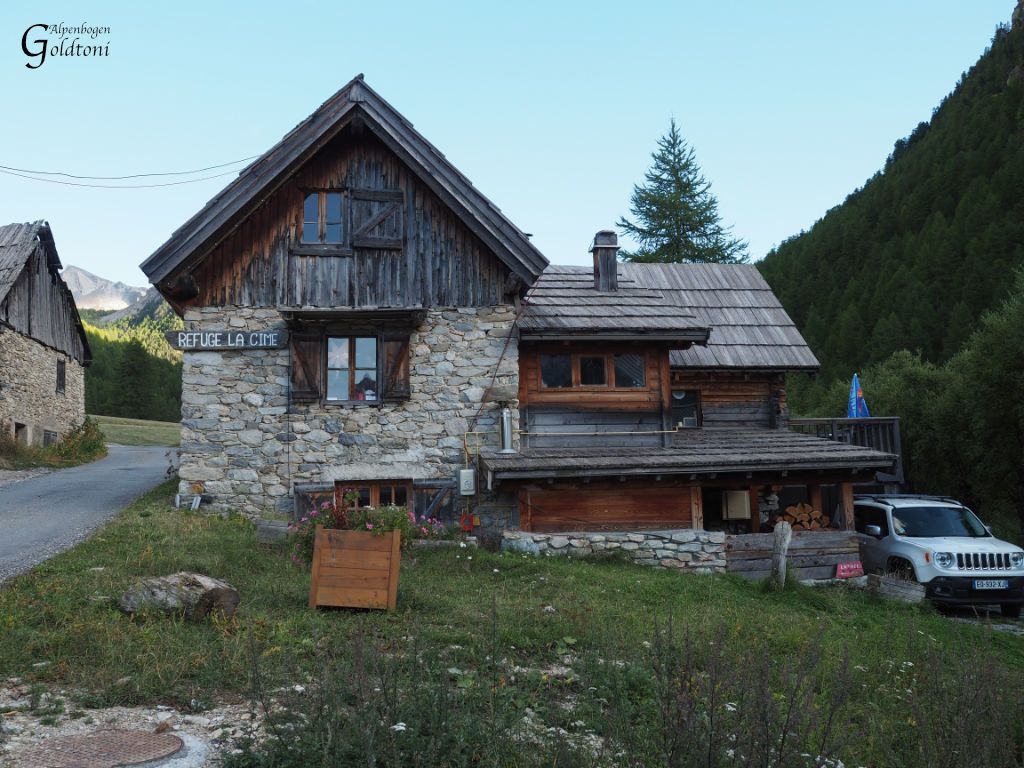 Von Guillestre führte der Weg erst mal hoch oben den Fluss entlang, der sich hier tief in das Gelände eingegraben hat. Links vom Weg gehts stets steil runter. Später entfernt sich der Weg vom Fluß und führt durch den Wald immer steiler werdend zum Gipfel Croix du Cugulet wo eine steinerne Figur und ein Gipfelkreuz steht. Hier gibt es bereits eine wunderbare Sicht, auch die nächsten beiden Gipfel sind schon gut sichtbar. Weiter gehts den Grat entlang zum Sommet du Cugulet und weiter zum Pic d’Escrein dem höchsten Punkt der Tagestour. Der Abstieg nach Ceillac ist recht einfach aber lange. Für die Nacht entschied ich mich für das Refugio de la Cime das nicht direkt am Via Alpina sondern etwas abseits in einen Skigebiet auf halber Höhe ist. Es handelt sich dabei um eine extrem einfache und kleine Hütte mit Schlafgelegenheit für max 20 Personen. Dafür aber richtig heimlich.