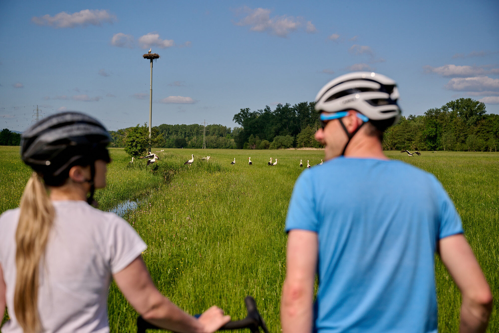Die östlich von Landau in der Pfalz gelegene Rundtour "Storchentour" führt Sie auf einer Gesamtlänge von 39 km durch den natürlichen Lebensraum der Weißstörche. Seit Ende der 90er Jahre wurde der Weißstorch wieder in der Pfalz heimisch, sodass sich heute eine stabile Population verzeichnen lässt. Über Rad-, Feld- und Forstwege radeln Sie bei einer Streckendauer von unter 3 h auf dieser leichten Tour mit einzelnen moderaten Steigungen durch angenehme Waldpassagen, durch die Queichwiesen und durch sehenswerte Ortschaften. Dabei entdecken Sie, je nach Zeitpunkt, brütende, staksende und fliegende Störche und haben die Möglichkeit sich im Storchenzentrum in Bornheim eingehend über die besonderen Tiere zu informieren. Besonders spannend ist die Tour im Zeitraum der traditionellen Queichwiesenbewässerung, im Hochsommer, wenn in den Storchennestern die Jungvögel beobachtet werden können, oder im Spätsommer, wenn sich die Störche zum Abflug in den Süden sammeln.