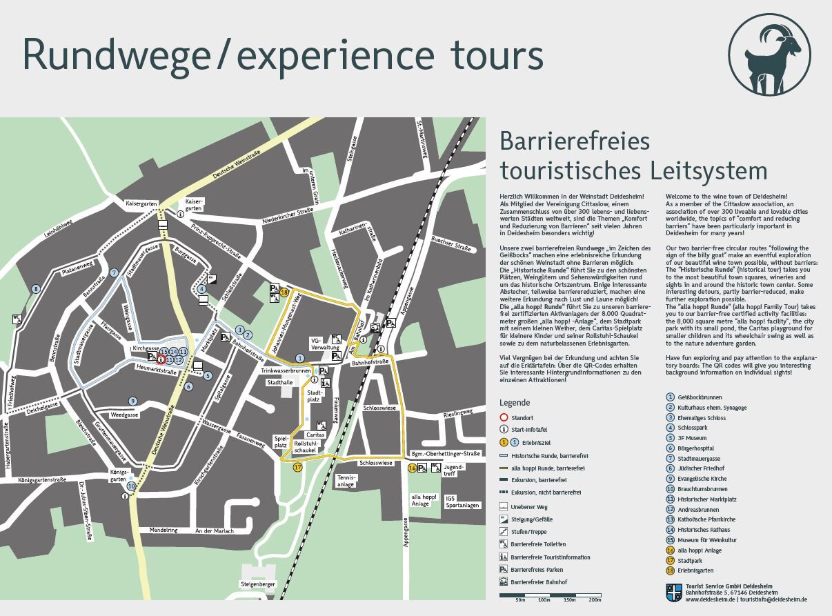 Barrierefrei erfahren Sie auf dieser Tour historische Weinorte, Pfälzer Weinberge, Gemüsefelder und Obstplantagen und genießen die Pfälzer Lebensart. Es lohnt sich mehrere Stopps zeitlich einzuplanen. Die Tour verläuft im südlichen Bereich der "Reben- und Rüben-Runde" und folgt dem entsprechenden Routenlogo. In Niederkirchen wird eine Querspange genutzt um zum Ausgangsort nach Deidesheim zurück zugelangen.