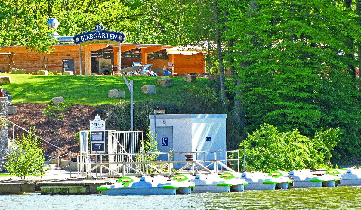 Durch den Jägersburger Wald radelst du nun Richtung Nordwest und erreichst den Schlossweiher, an dem du entspannen und dich in einer der Einkehrmöglichkeiten stärken kannst. Ruh dich hier ein bisschen aus, denn danach wartet eine kleine Herausforderung auch dich. Die Route führt nun auf den Höcherberg, der mit 517 Metern die höchste Erhebung der Saarpfalz stellt. Wenn du oben ankommst, hast du dir eine Pause im Restaurant verdient, das dich am Gipfel erwartet.