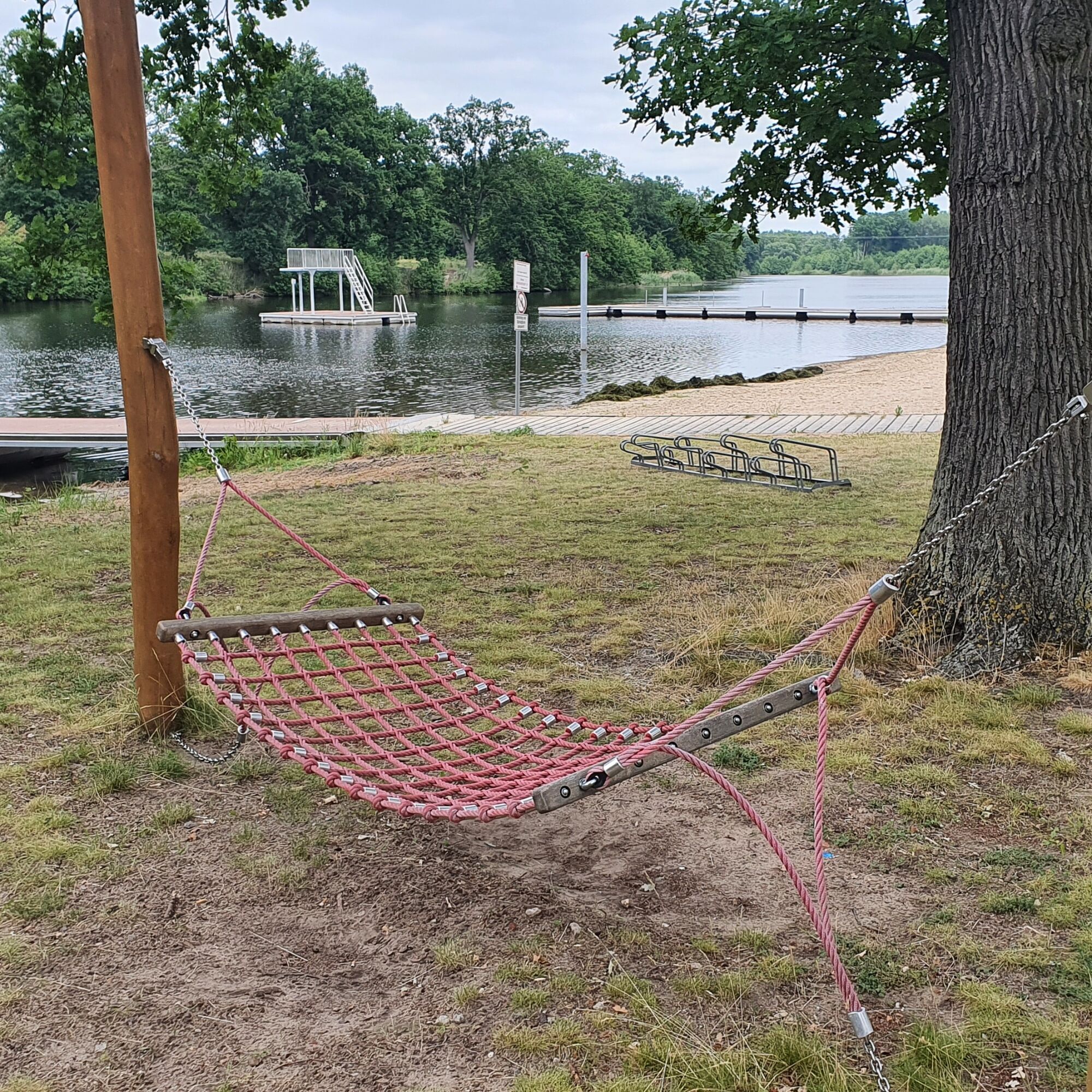 Wir verlassen Genthin nicht entlang der Elbe sondern fahren durch Wälder und Heide am Rand der Elbeniederung in Richtung Süden. Die Elbe ist auch weit vom heutigen Flusslauf präsent, so laden uns die Altwasserarme in Kamern zur Rast und im Sommer zum Baden ein.