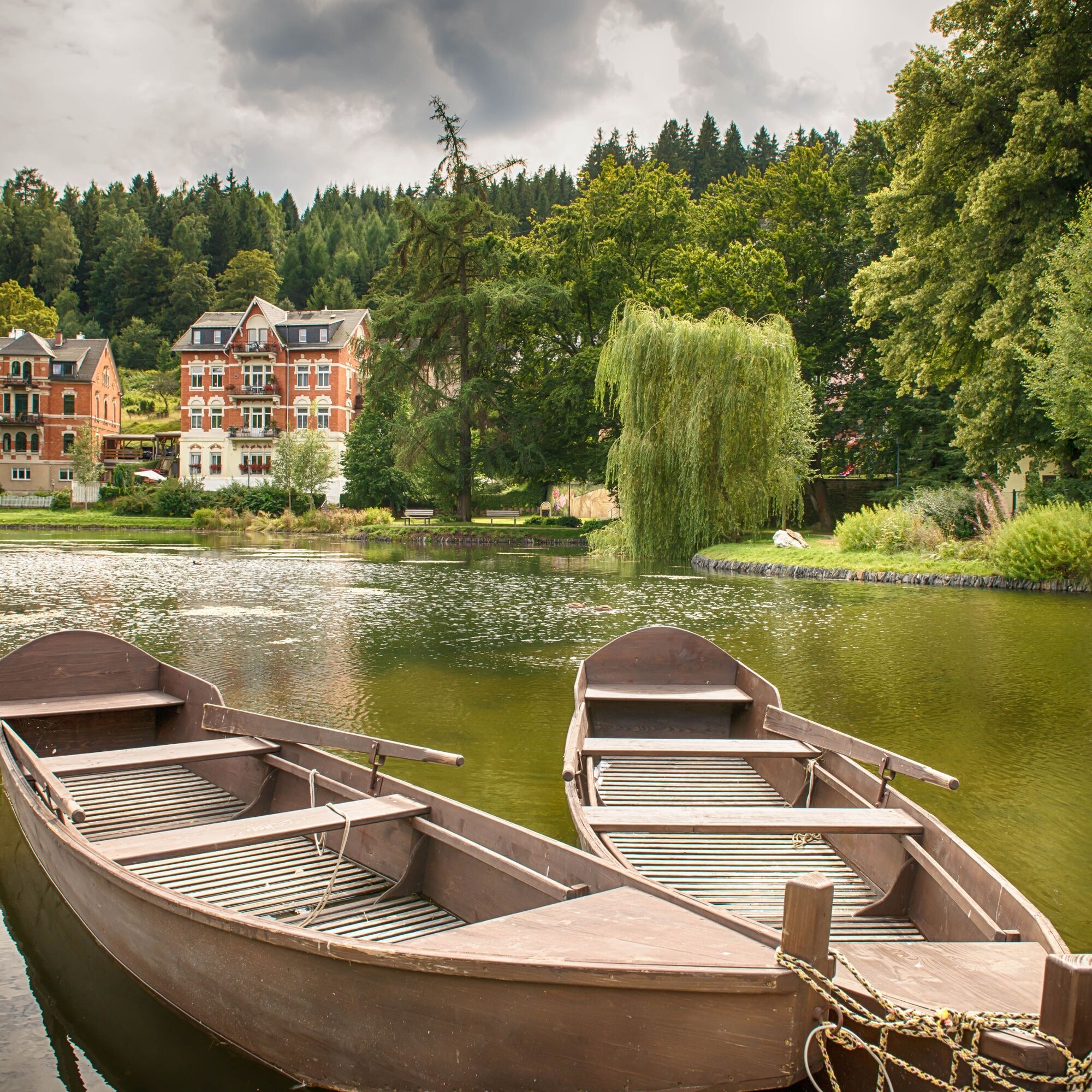 Ausgehend vom Bahnhof oder dem Parkplatz am Landhaus Adorf, führt uns der Ringweg östlich des Brunnenbergs durch ein schönes Waldgebiet hindurch. Schließlich macht der Wanderweg einen Bogen, um schließlich am Oelschlägelteich den Kurort vom Süden aus zu entdecken: der Paul-Schindel-Park, Rosengarten und die historische Parkanlagen machen vertraut mit der natürlichen Aufenthaltsqualität und dem wohltuenden Erholungsraum, der Bad Elster prägt.