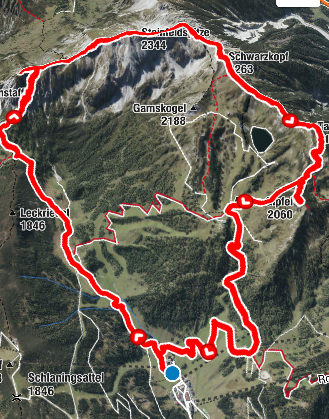 Vom Bärnstaffl bis zum Schwarzkopf ist alpines Gelände und zum Teil sind ausgesetzte Stellen. Schwindelfreiheit erforderlich!