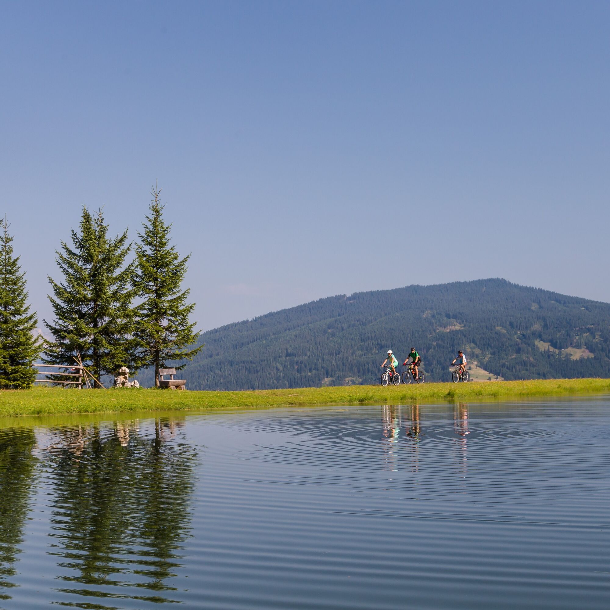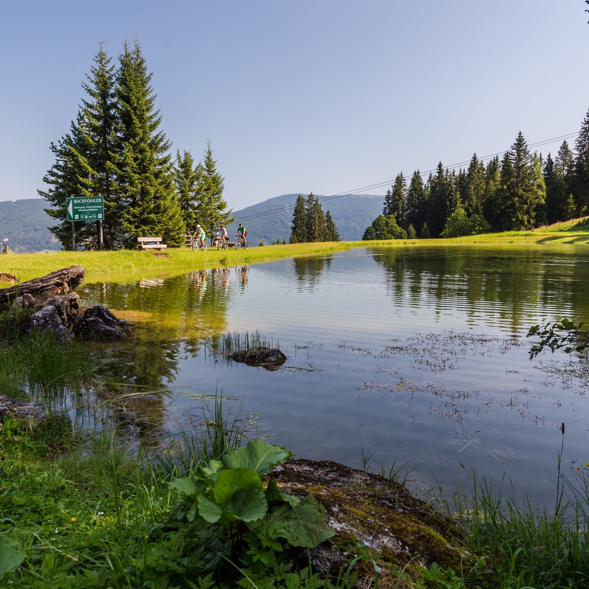Wo im Winter Skifahrer über die Pisten carven, geht’s mit dem Bike zur schön gelegenen Hochnössleralm. Lohnenswerte Abstecher auf der Runde sind der Waldhochseilpark und der Mühlenweg.