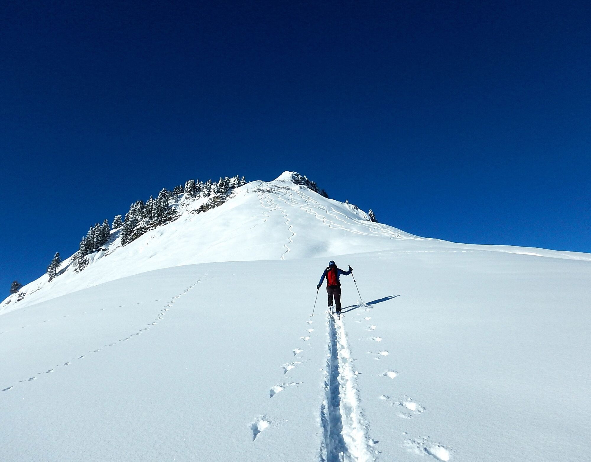 Skitourenausrüstung, Verpflegung (Getränk, Snacks) ggf. Harscheisen, LVS Gerät, Schaufel und Sonde, Erste Hilfe Set, Karte/GPS