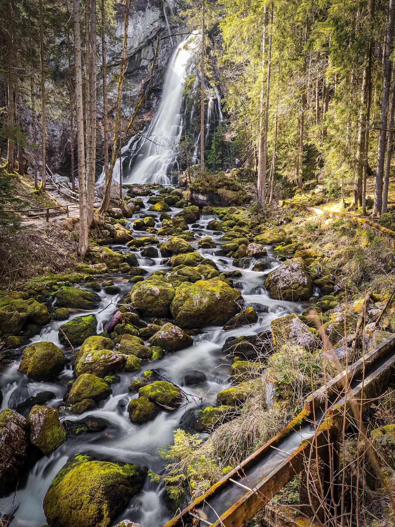 Vom Ortszentrum ausgehend Richtung Salzachbrücke gehen, dort links abbiegen und der Straße Richtung Oberweißenbach folgen. An der Kreuzung beim Sägewerk Züger und der Kapelle links in den Grifftererweg einbiegen und dem Wiesenweg folgen (alternativ gelangt man auch über die asphaltierte Straße Richtung Mühle). Kurz vor der Nikolauskirche, die bereits von weitem aus sichtbar auf einem Felsplateau thront, rechts den Steinerweg und Kösslweg nehmen, vorbei an der Haflingerzucht Holzerhof und den Wegweisern zum Wasserfall bzw. zur Gurrer-Mühle folgen.
