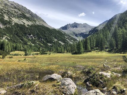 Vom Wanderer-Parkplatz Grüner Baum geht es ins Kötschachtal bis zum Alpengasthaus Prossau (Wanderstempel kurz zuvor). Dort geht es hinein in den Wald und es erfolgt der Aufstieg ins Hochmoor. Im Wald muss...